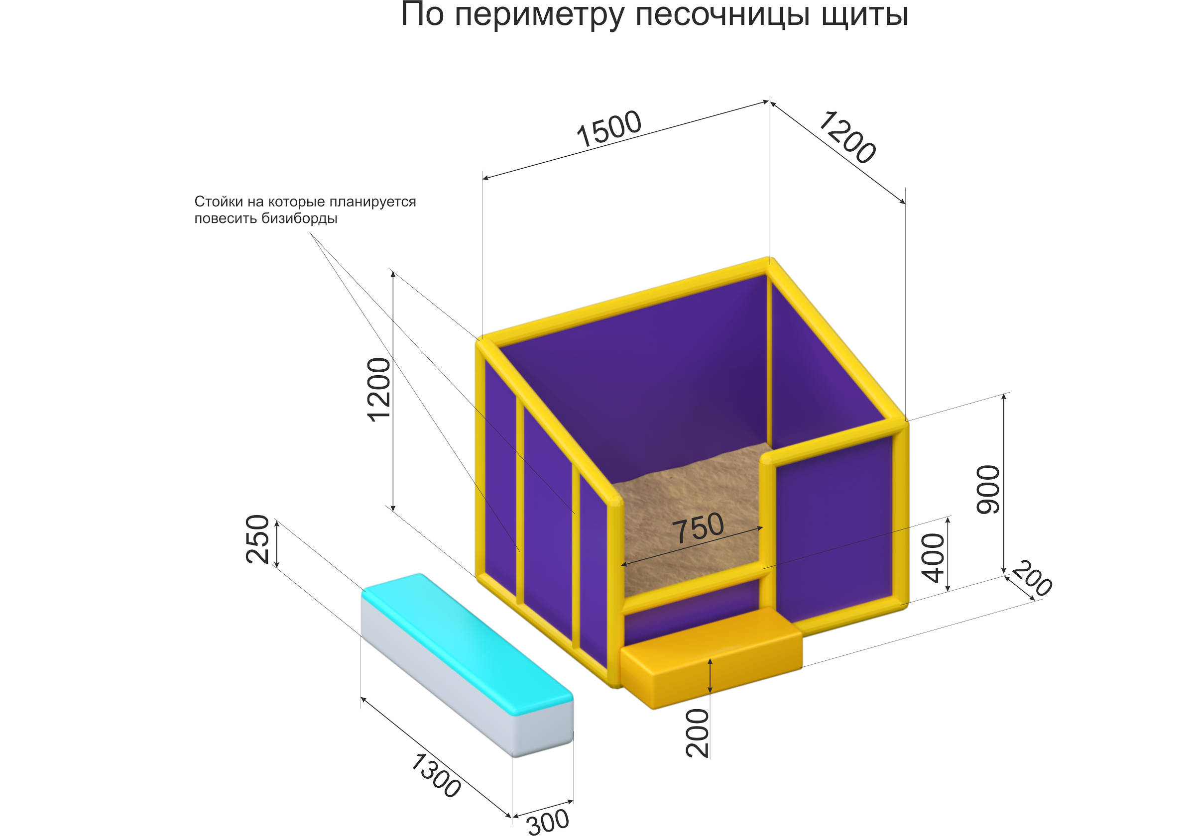 Оснащена мягким ограждением, лестницей для удобного входа и лавочками по периметру. Внутри — кварцевый песок (на выбор: классический или цветной).