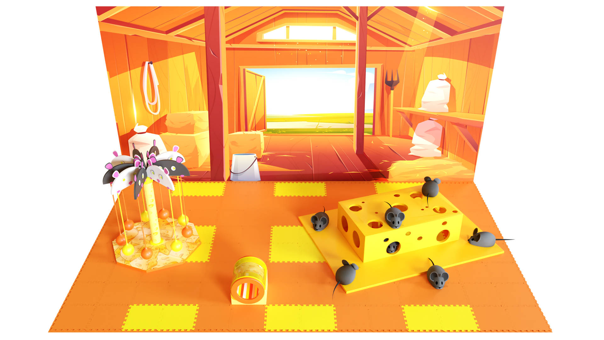Сырный домик с мышами — настоящая находка для активных малышей! Дети могут пробираться сквозь отверстия, как мышата в сыре, играть в догонялки, прятки и просто общаться внутри лабиринта. Что внутри: