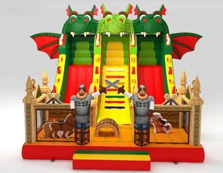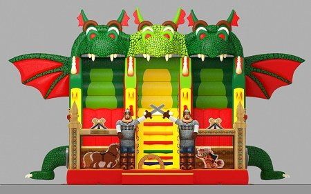 Надувной батут изготовлен в виде импровизации из известной сказки про «Змея Горыныча и Добрыню Никитича» – реалистично и ярко воссозданных в данной модели. Детишки с азартом и весело смогут провести время на этом аттракционе, поскольку в головах «огнедышащего змея» располагаются 2 большие горки. Поднимаясь по ступенькам ребенок попадет прямо в «пасть сказочного дракона», а совершая спуск, с ветерком прокатится на языке импровизированного «чудовища». На входе детей встретят два «величавых» богатыря. На площадке можно побегать, попрыгать или просто побыть в роли всадника богатырского коня, а если очень захочется, даже обуздать верхом «Бабу Ягу». Особенностью батута является яркая и детальная прорисовка фигур, которая не оставит равнодушными детей и их родителей. Этот батут можно купить только у нас, так как эта модель является нашей разработкой!