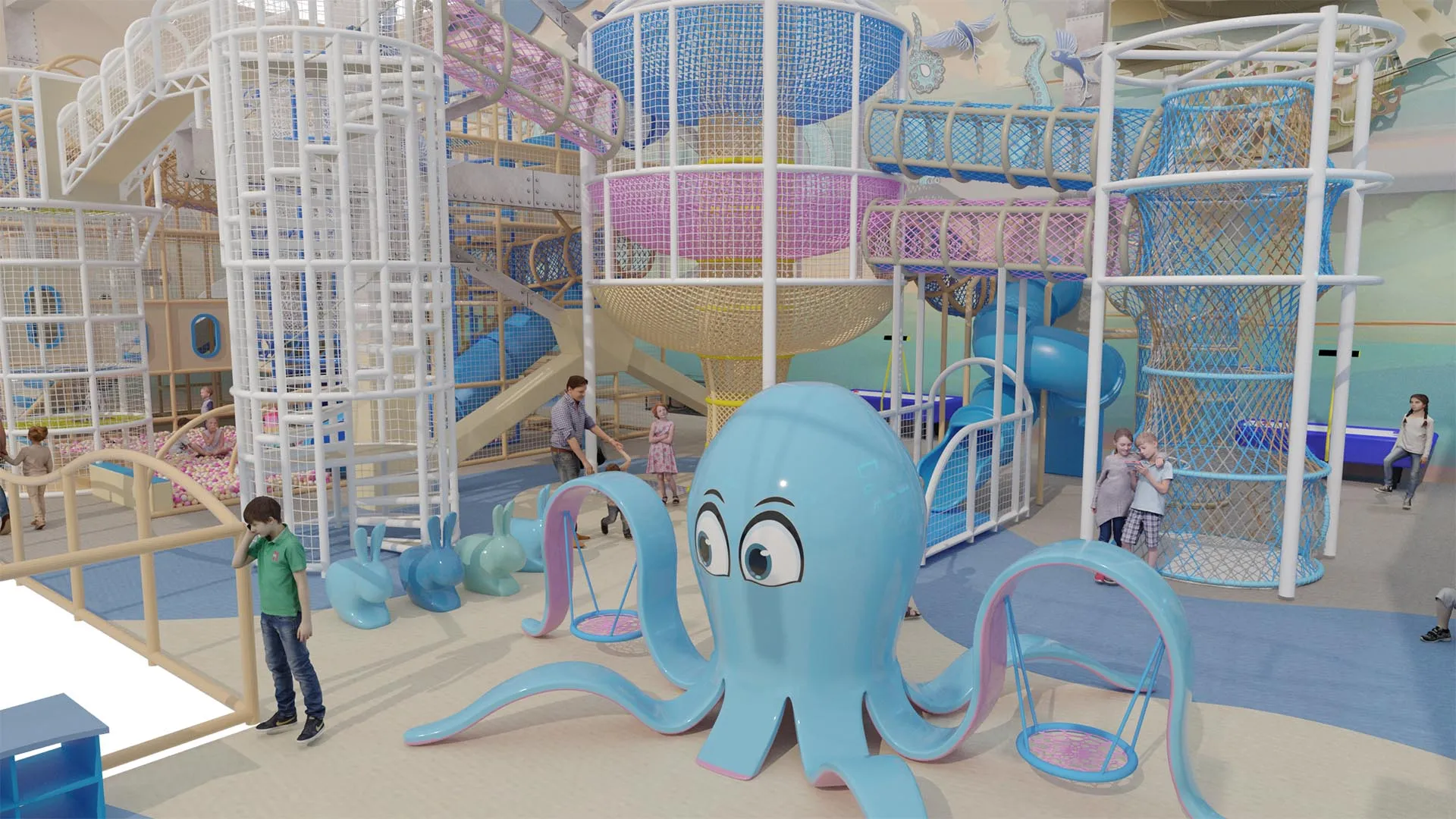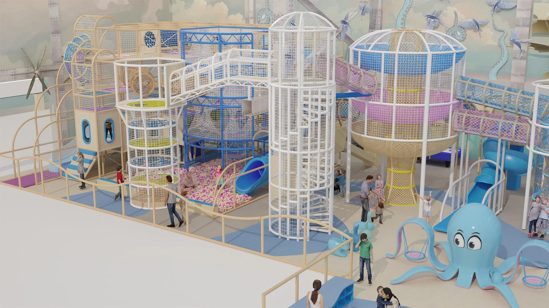 Детский игровой центр "Царство осьминога" размещен на небольшой площади - 350 м2, но имеет достаточно высокие потолки. При выборе помещения многие владельцы развлекательного бизнеса обращают внимание лишь на его площадь. Высота потолков также является важным фактором, который часто остается вне поля зрения. Проектирование детского центра с высокими потолками открывает перед нами уникальные возможности для проектирования масштабных конструкций и создания увлекательного пространства для детей. Одним из ключевых преимуществ такого помещения является возможность разместить высотное оборудование, даже на небольшой площади. Это способствует эффективному использованию вертикального пространства, увеличению проходимости, функциональности и, конечно же, прибыльности проекта. Высокие конструкции позволяют интегрировать лесенки и переходы , что делает пребывание в центре более динамичным и интересным. Дети смогут исследовать различные уровни, проползать по многочисленным туннелям и открывать для себя новые локации. Многоуровневые конструкции создают ощущения приключения и стимулируют детей к повторным посещениям. Гигантский осьминог с качелями станет местом создания незабываемых семейных фотографий, которыми посетители смогут поделиться в своих социальных сетях.