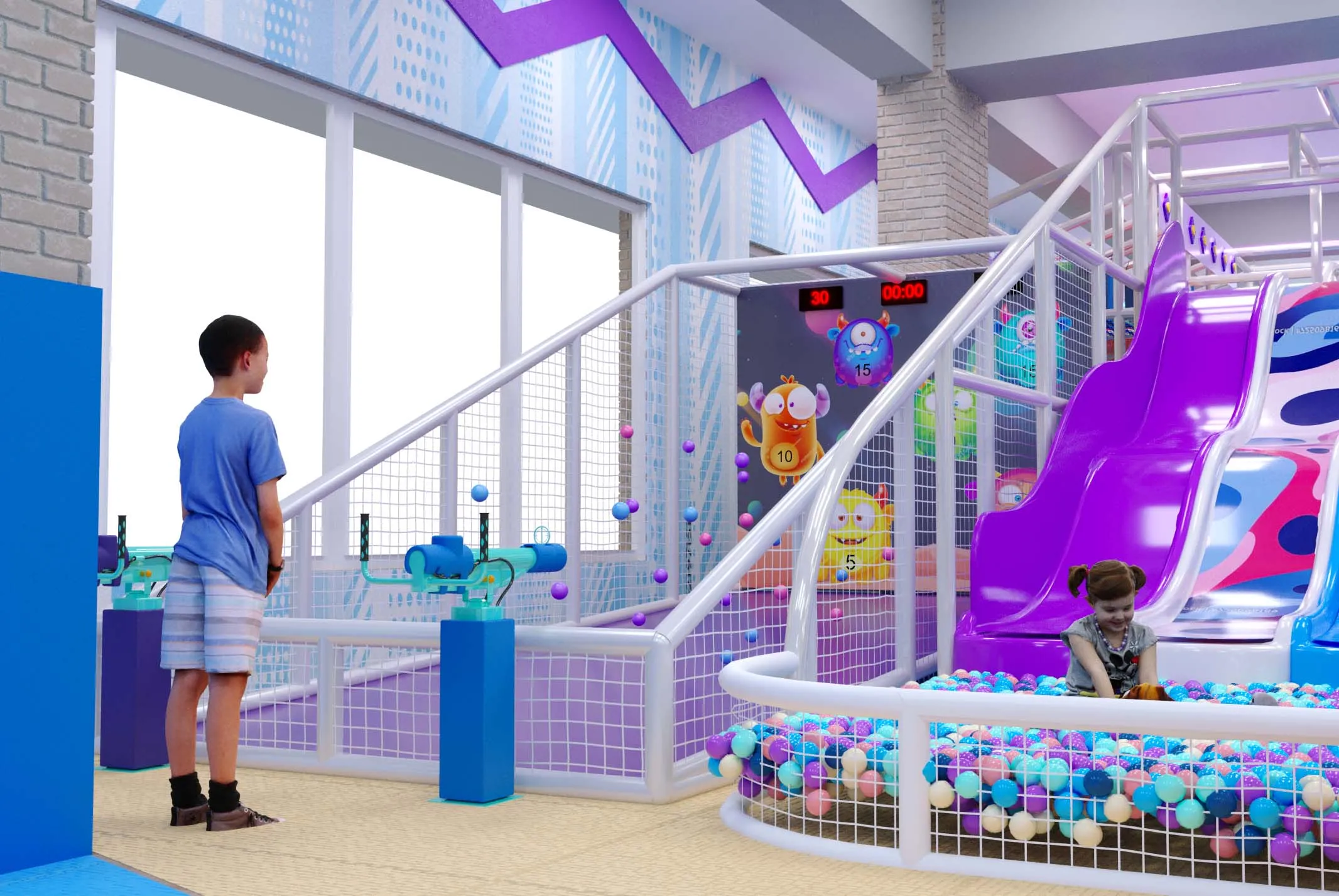 - Батальная зона с воздушными пушками и интерактивными панелями