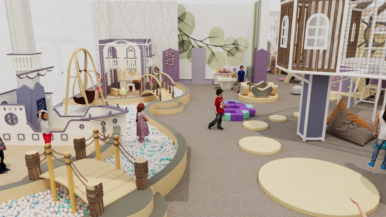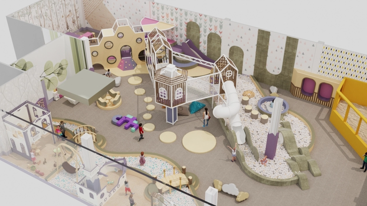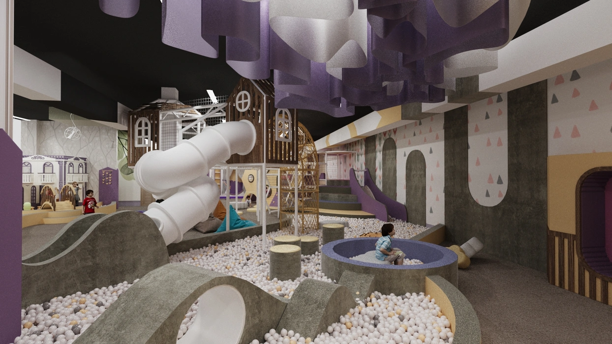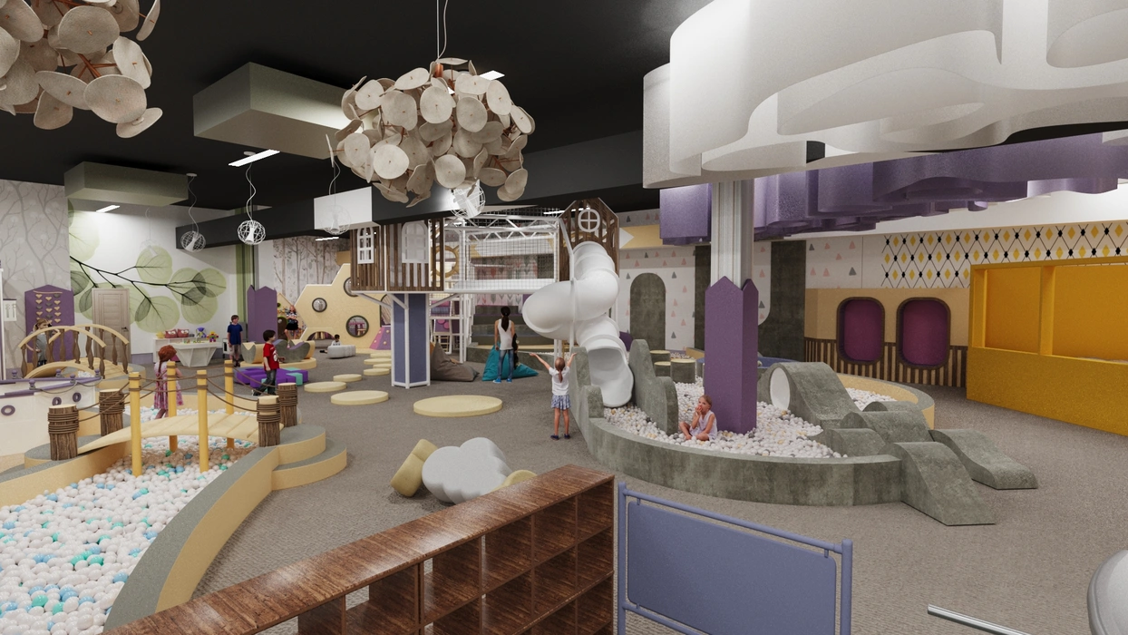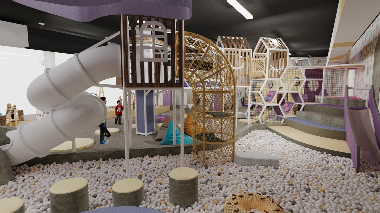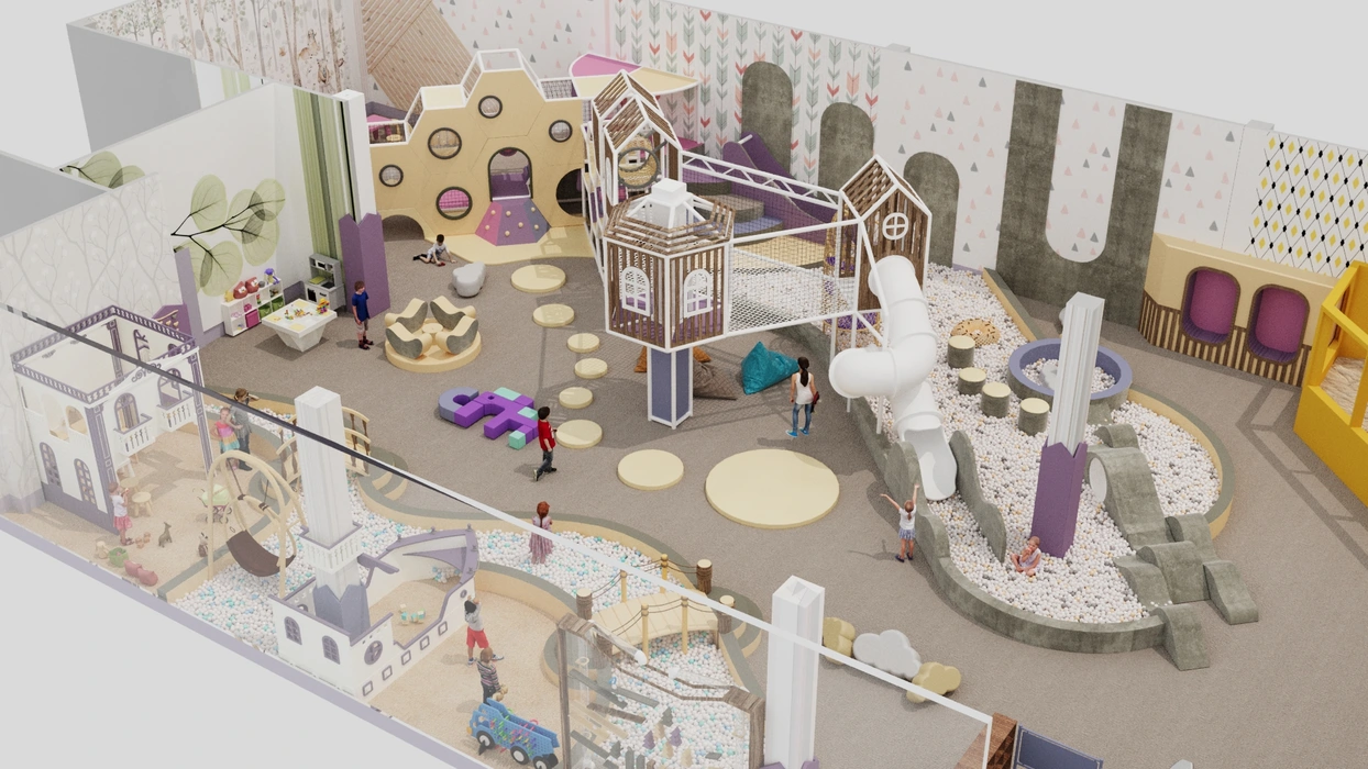 Дизайн этого очаровательного активити-парка выполнен в мягкой цветовой гамме с элементами прованского стиля, где отсутствуют кричащие цвета, создавая уютную и сказочную атмосферу. Акцентом служат стилизованные элементы декора и уютная подсветка, подчеркивающая уникальный дизайн.