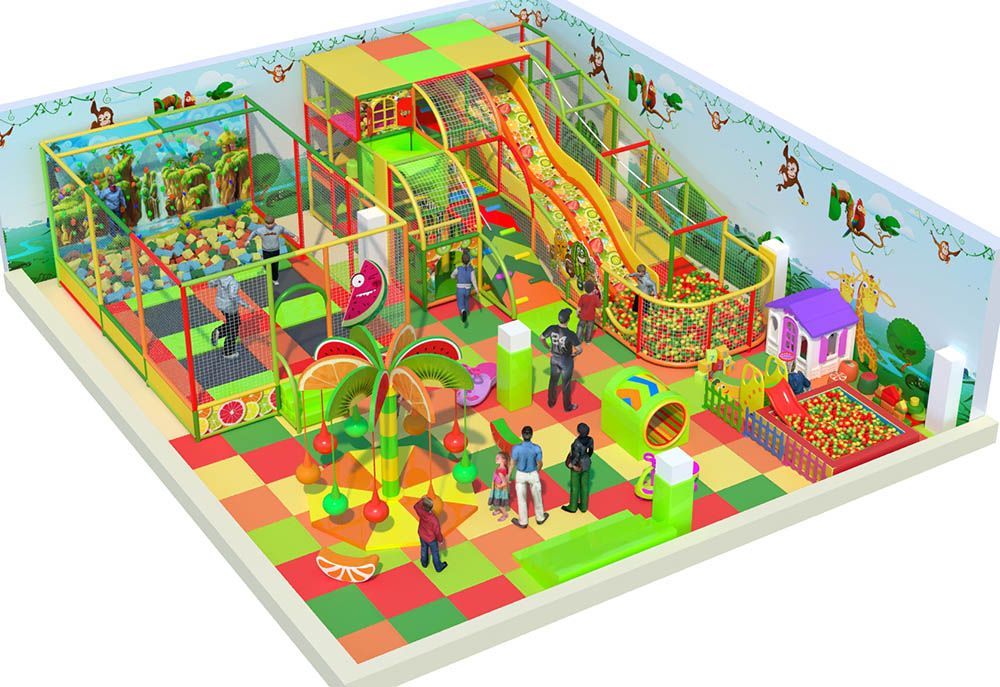 Яркая игровая комната «Тропические фрукты» выполнена в летних оттенках. Наполнение игровой комнаты состоит из лабиринта со стеклопластиковыми горками и бассейна с шариками, батутов, скалодрома с поролоновой ямой, карусели «Пальма», карусели «Радуга» и малышковой зоны. Вместительная игровая приносит прибыль не только за счет постоянного потока посетителей, но и за счет проведения дней рождений и тематических праздников.