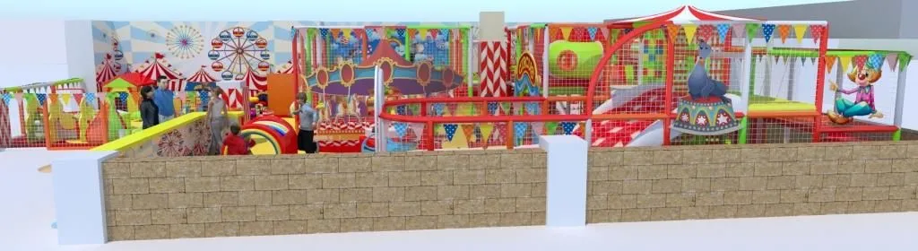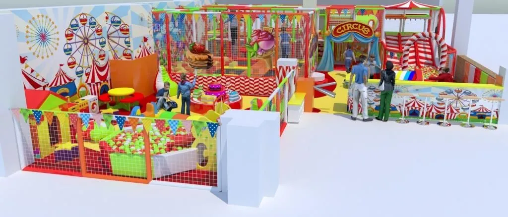 Детский развлекательный центр «Central Circus» выполнен в цирковой тематике. Большую часть игровой занимает яркий лабиринт со стеклопластиковыми горками, сухим бассейном, батутной ареной, скалодромом и поролоновой ямой. Для стилизации дизайнеры не только «окрасили» оборудование в цирковые цвета, но и разместили тематические баннеры.