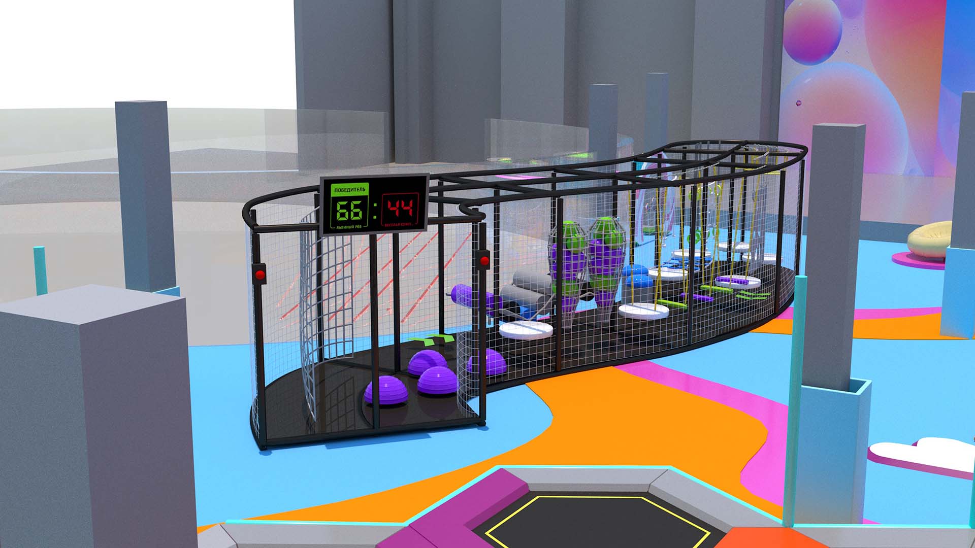 В активити-парке Sweet World также есть и интерактивные игры - футбол, баскетбол, батут-вертолет, они подарят вам удивительные эмоции и впечатления. Проект включает в себя игровой лабиринт с горками, ниндзя-квест и спайдер с винтовым спуском. Мы предусмотрели предпочтения самых маленьких гостей и продумали для них отдельную зону с лабиринтом, сухим бассейном, мягкими модулями, песочницей.
