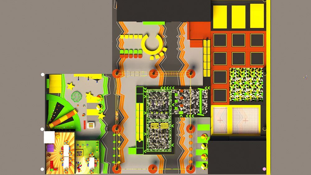 Сочетает в себе элементы батутного комплекса, карусель, детский лабиринт.