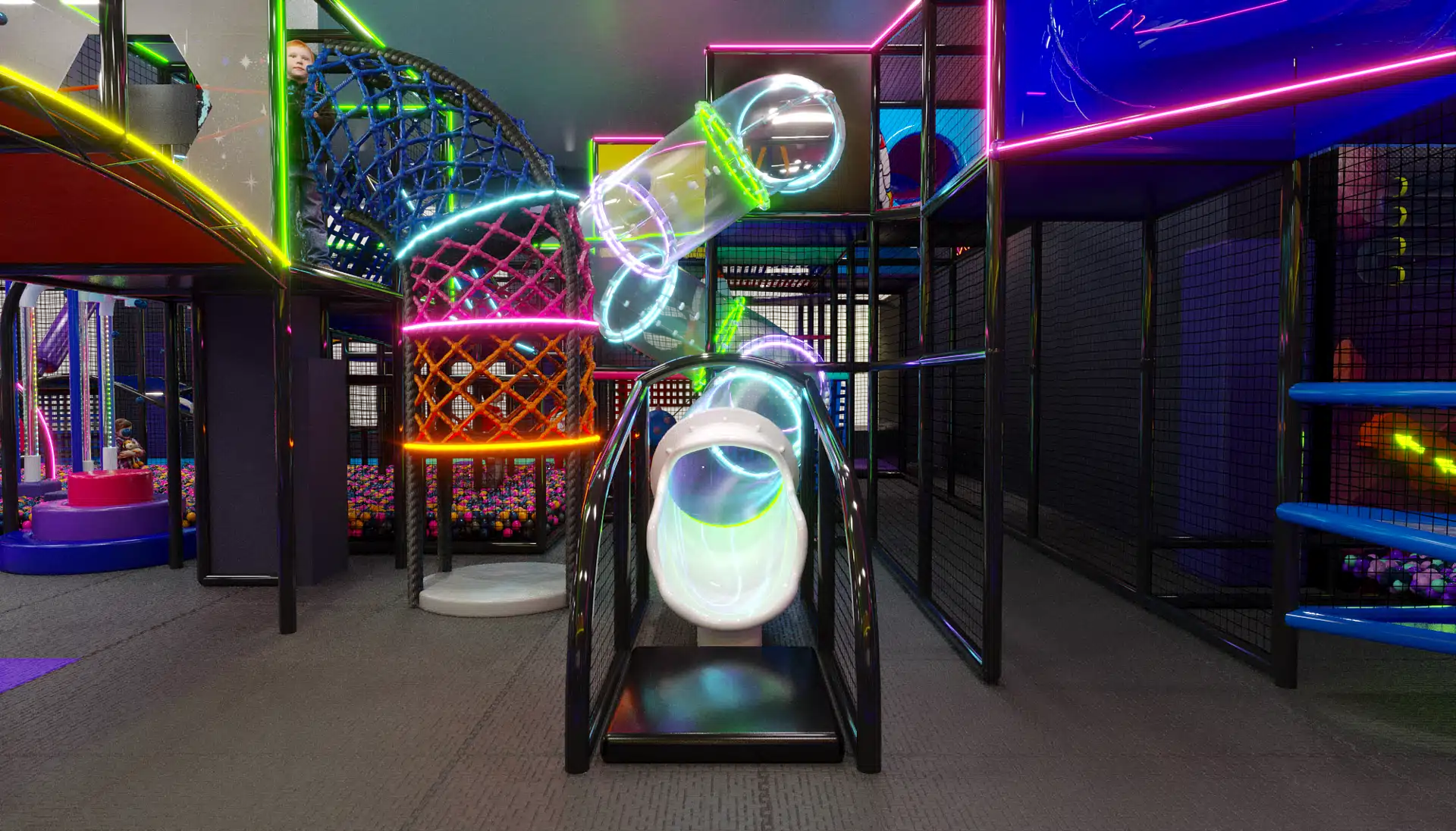 Центральный комплекс — это сеть туннелей, горок и переходов, дополненных мягкими модулями и интерактивными зонами. Особое внимание уделено безопасности и комфорту: мягкие покрытия и ограждения обеспечивают защиту. «Звёздный Путь» идеально подойдёт для дошкольников и младших школьников, предлагая пространство для игр, праздников и развития.