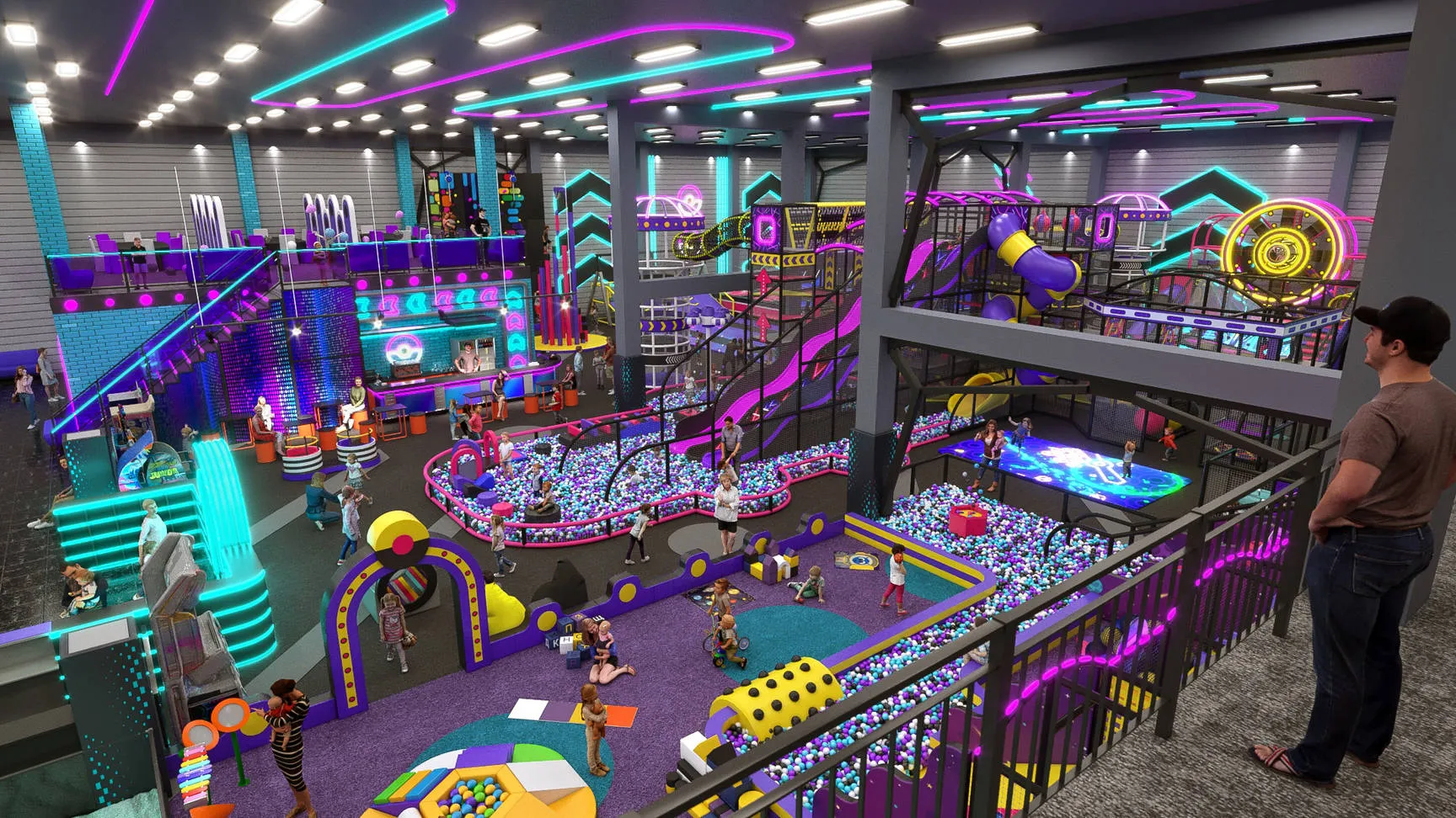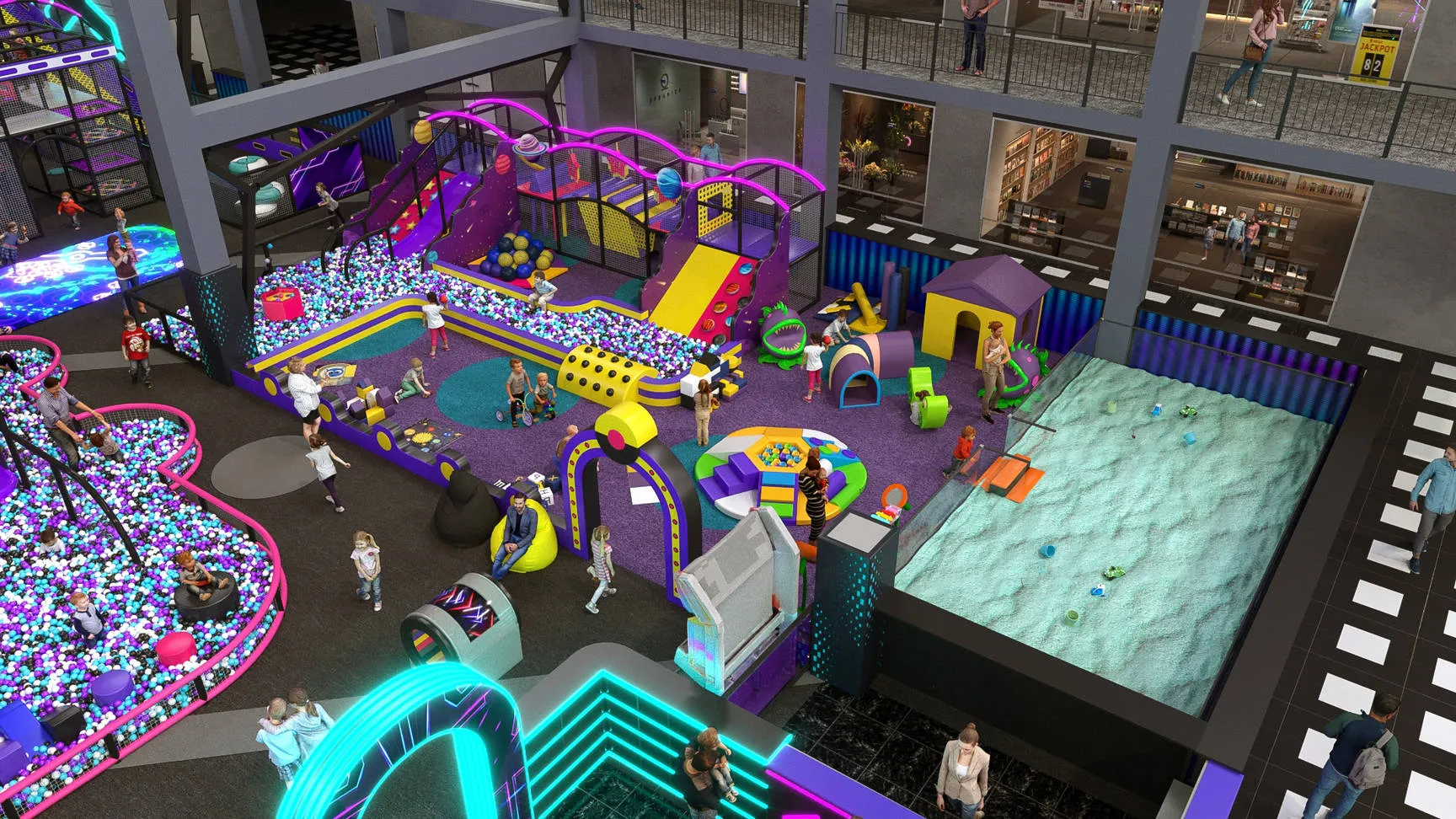 Семейный центр «Киберджой» — яркое и современное пространство для активного и творческого досуга детей в космической тематике. В дизайне преобладают тёмные фиолетовые и чёрные оттенки, которые подчёркивают глубину космоса, а неоновая подсветка акцентирует внимание на ключевых игровых элементах, создавая волшебную атмосферу.