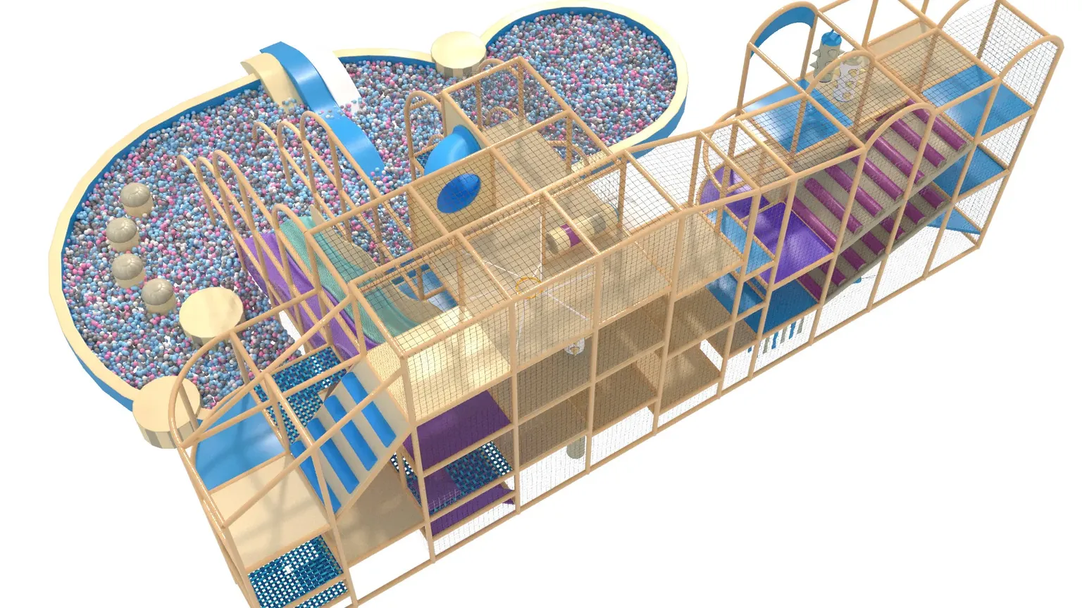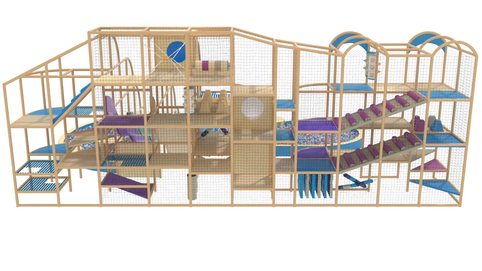 Горки, тоннели и альпийские подъёмы приглашают на весёлое приключение, а мягкие модули и сухой бассейн позволяют детям отдыхать и играть с комфортом. Такой лабиринт идеально впишется в семейный парк, кафе или торговый центр с дружелюбной, тёплой атмосферой.