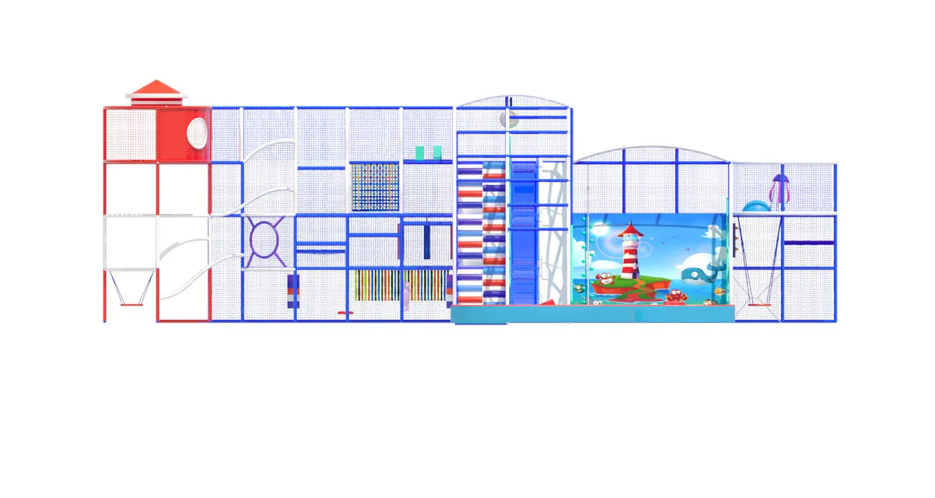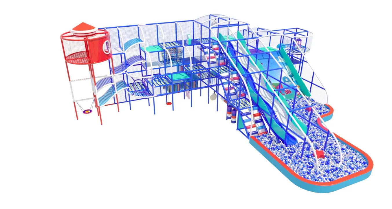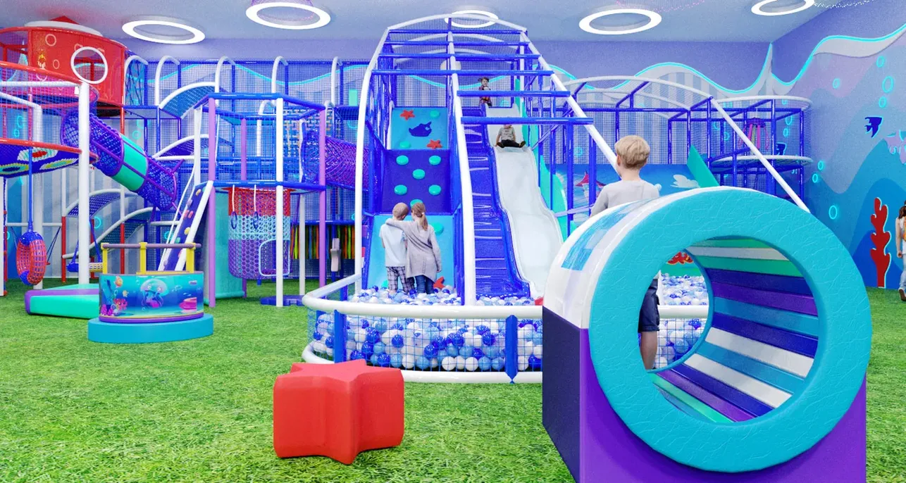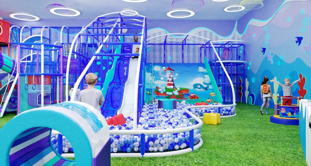 Здесь дети могут карабкаться по альпийским подъёмам, спускаться с горок в бассейн с шарами, проходить ленточные и сетчатые лабиринты, прятаться в тоннелях и играть с мягкими модулями.