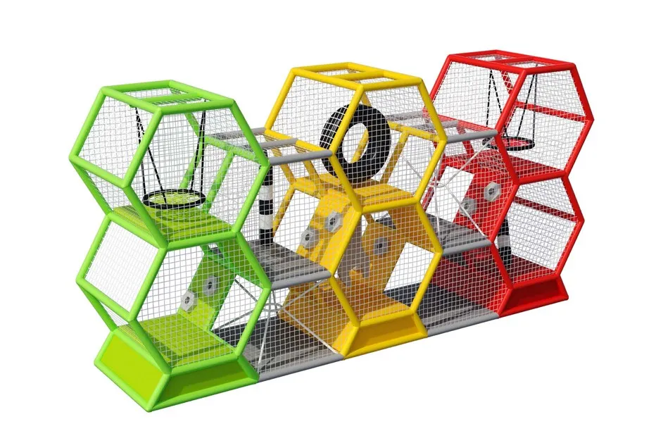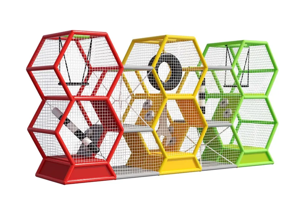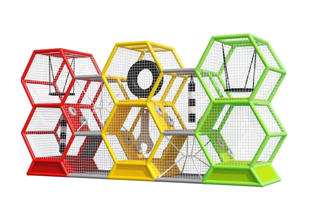 Игровой лабиринт «Автосервис» выполнен в оригинальной форме сот и оформлен в автомобильной тематике. В комплексе есть альпийский подъём, паутинка, качели «Гнездо» и подвесные груши для активных игр.