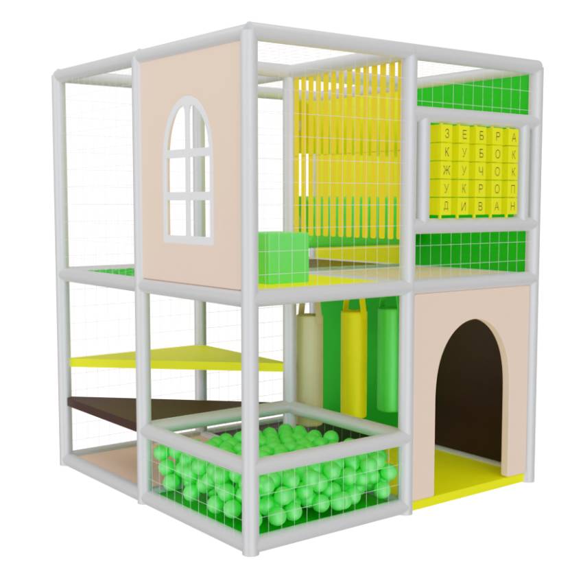 В комплексе есть сухой бассейн с шарами, вход-лапша, декоративное окно, кубы и щиты, а также лес груш и горизонтальный вал. Дополняет игру мозаика «Учимся считать», которая помогает развивать внимание и логику в процессе игры.