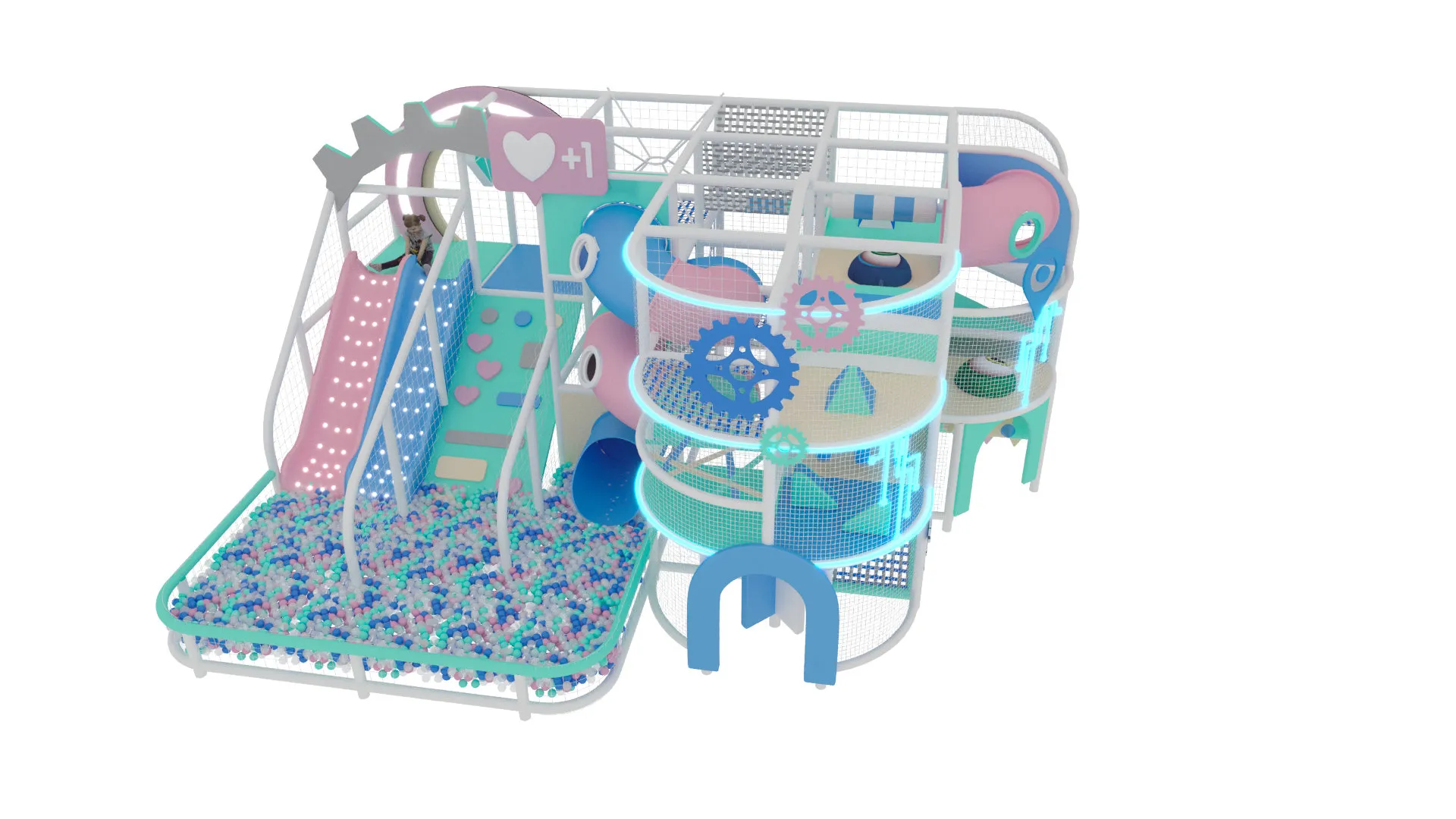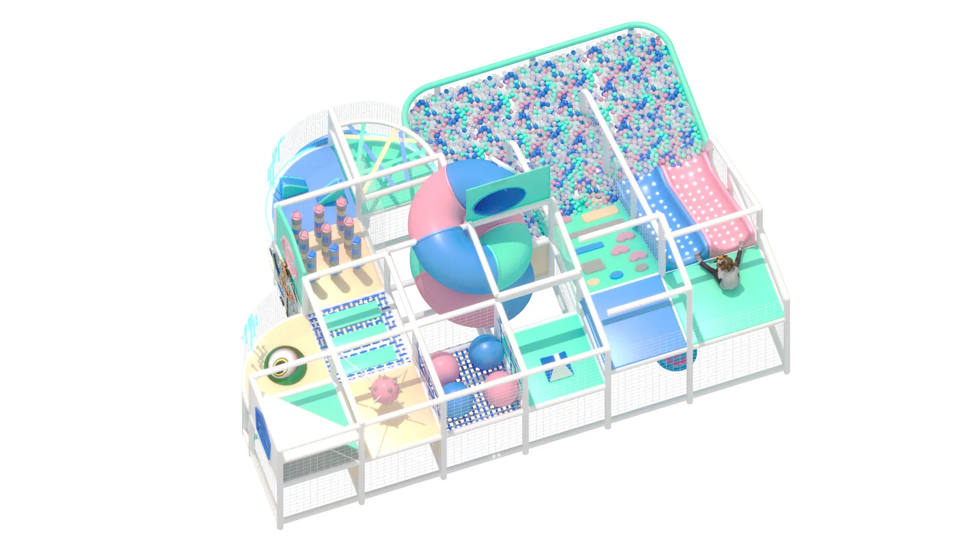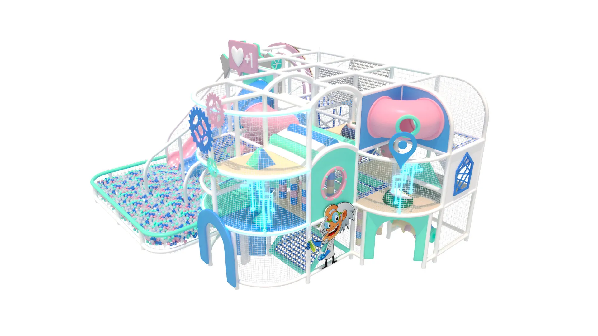 В комплексе есть горки и трубы разных форм, просторные зоны для лазания, сетчатые переходы, мостики и увлекательные игровые элементы, дополняемые большим сухим бассейном с шарами. «Лавита» станет центром притяжения в любом ТРЦ, семейном парке или игровой комнате, даря детям яркие эмоции, драйв и ощущение игры в мире будущего.