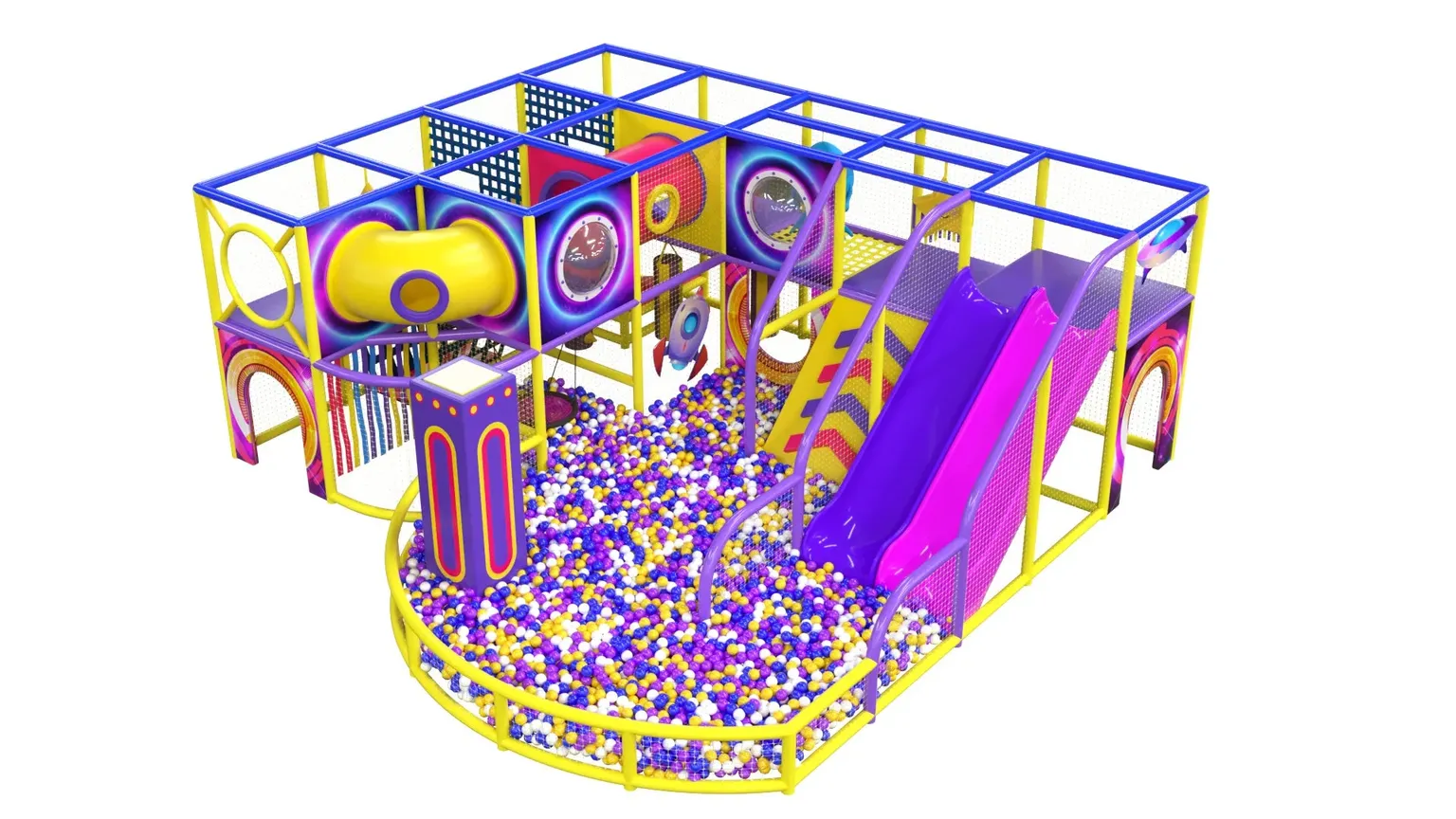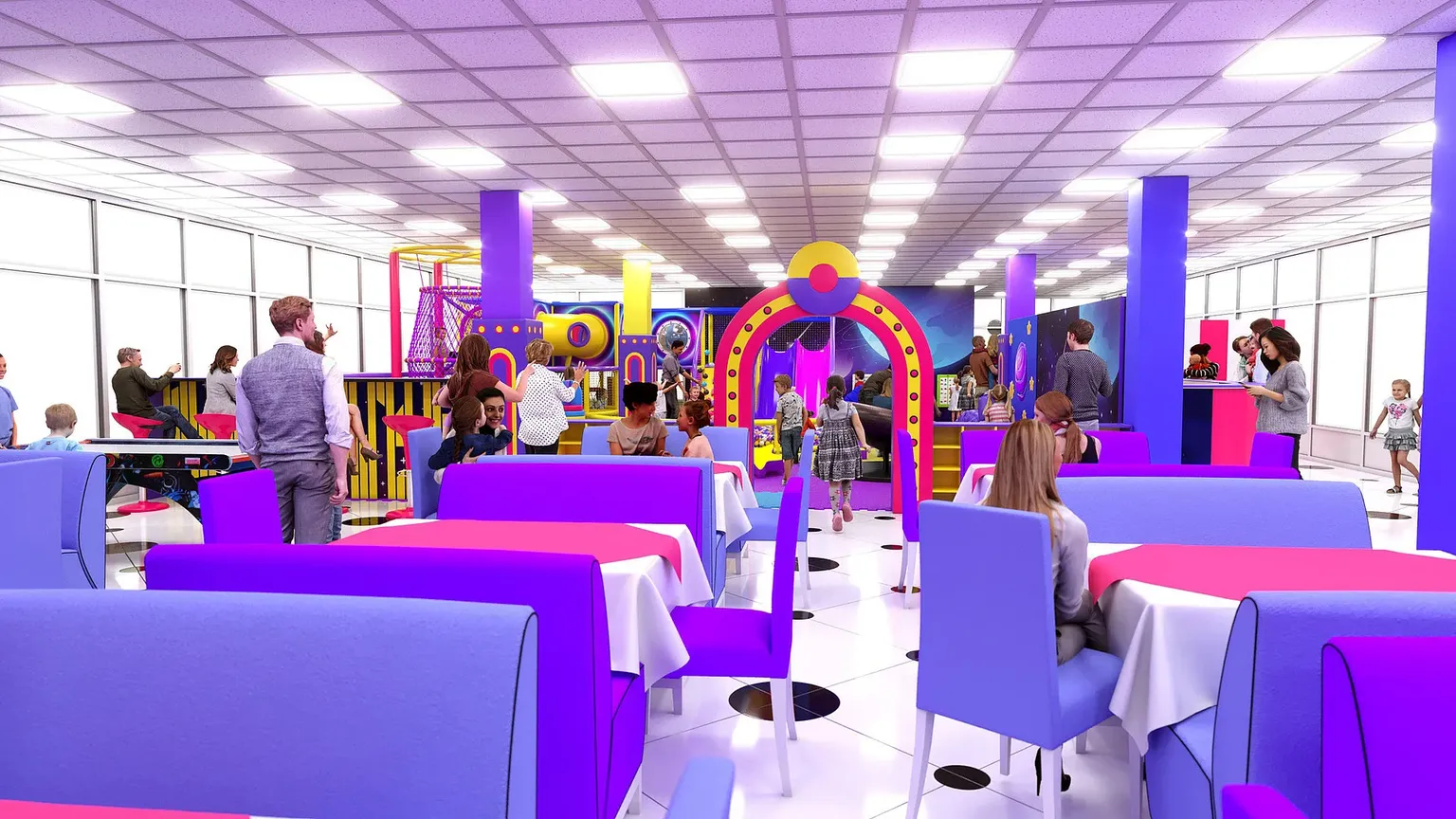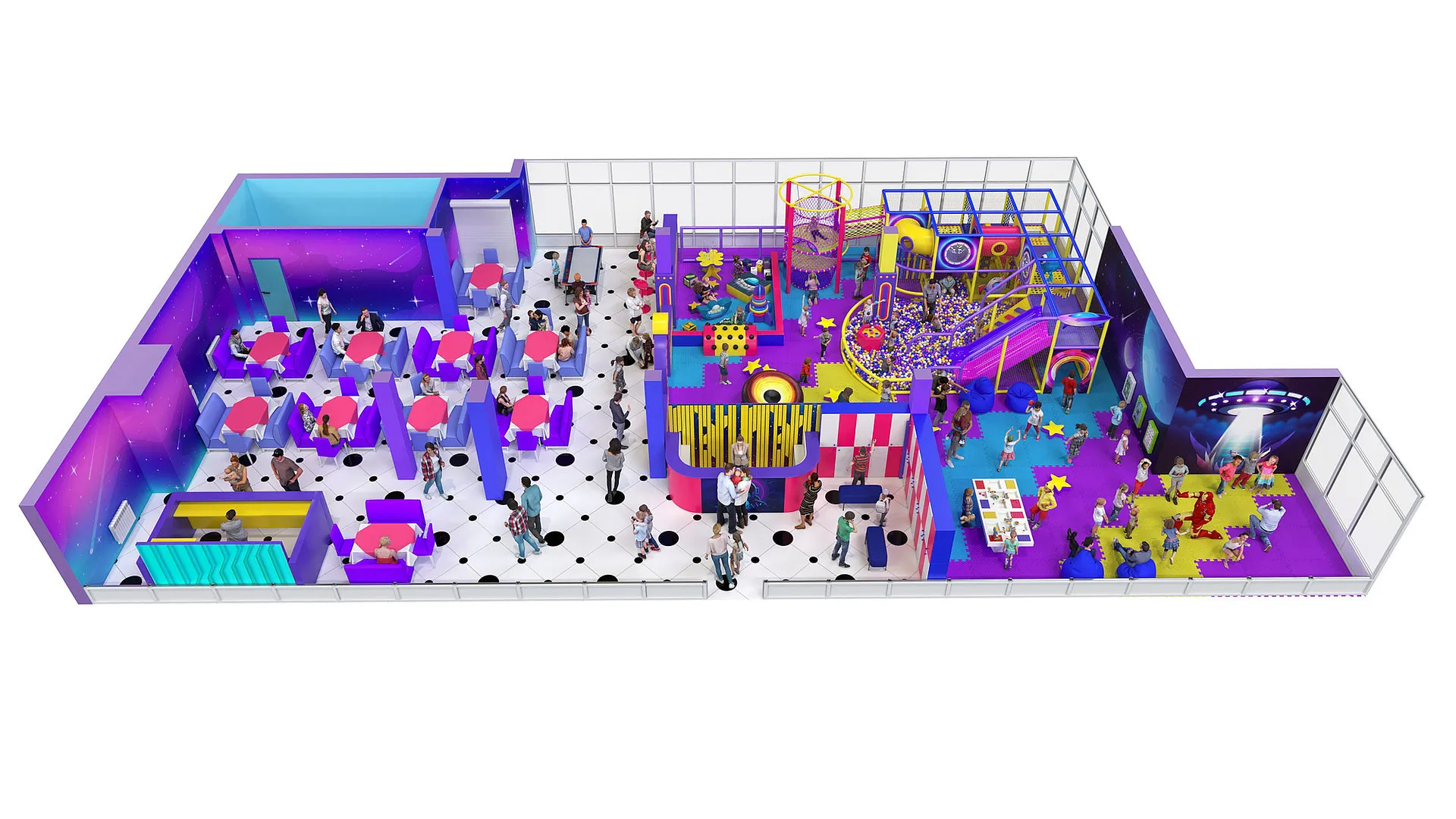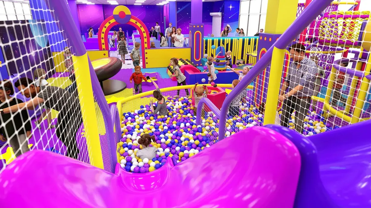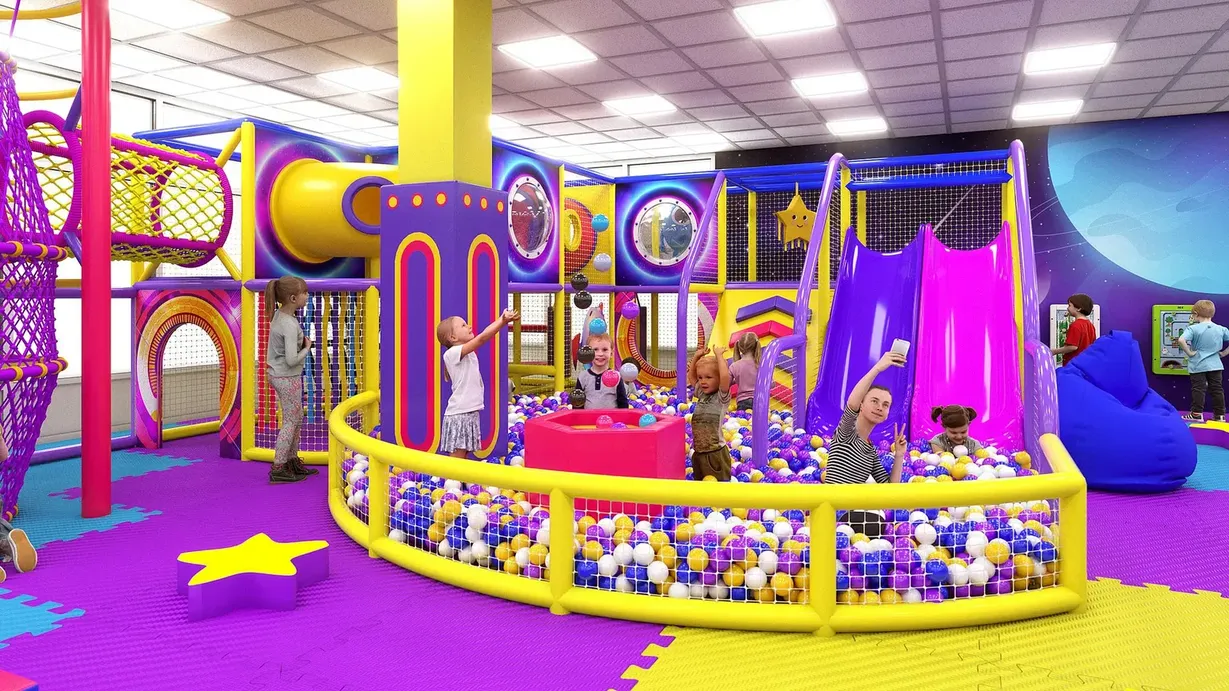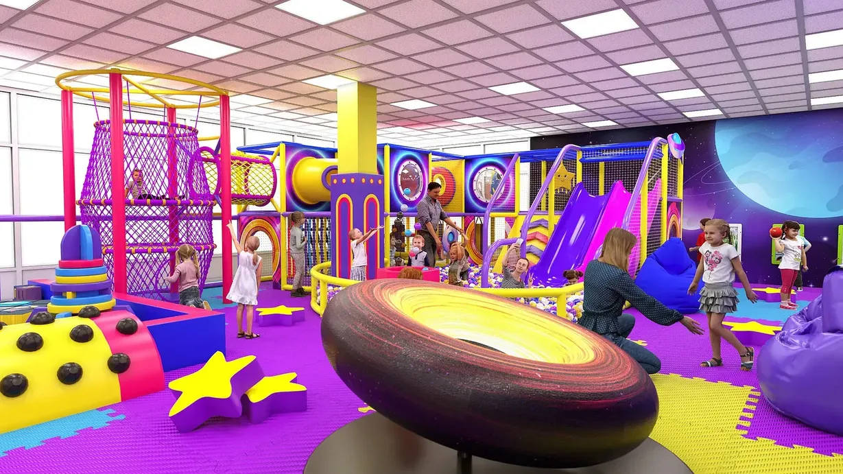 Такое решение подойдёт для детских парков, зон в ТРЦ и семейных пространств, где важно создать ощущение праздника и движения.