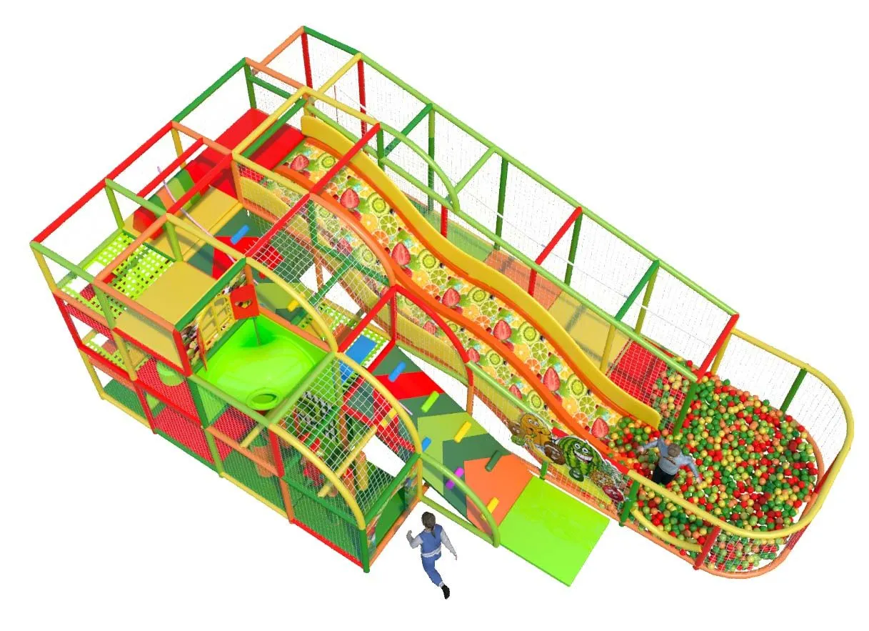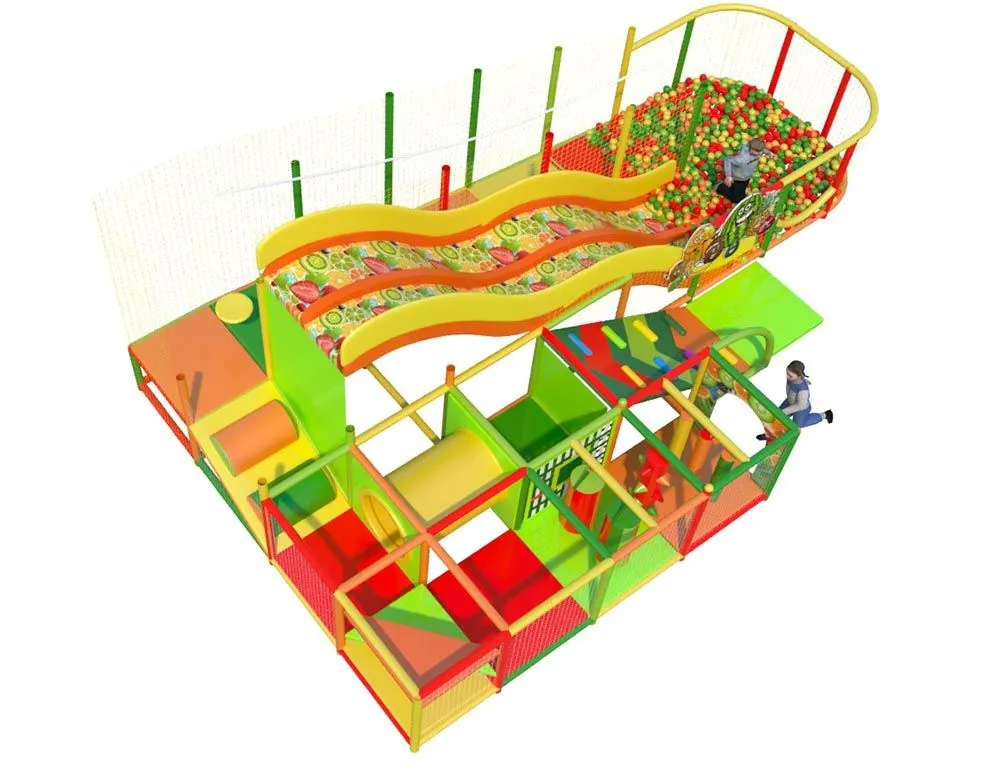 Планируете заказать игровое оборудование для детского развлекательного центра? Тогда присмотритесь к игровому лабиринту «Арбузик». Этот лабиринт одно из удачных решений для компактного помещения до 50м2. Разноцветные этажи с игровыми препятствиями в лабиринте придают комплексу свою уникальную историю и привлекают гостей множеством красок. В лабиринте собраны все любимые развлечения детей. Фишка игрового комплекса – большая стеклопластиковая горка, скатившись по ней дети попадают в сухой бассейн с шариками. Такой игровой центр не оставит равнодушными ни одного ребенка.