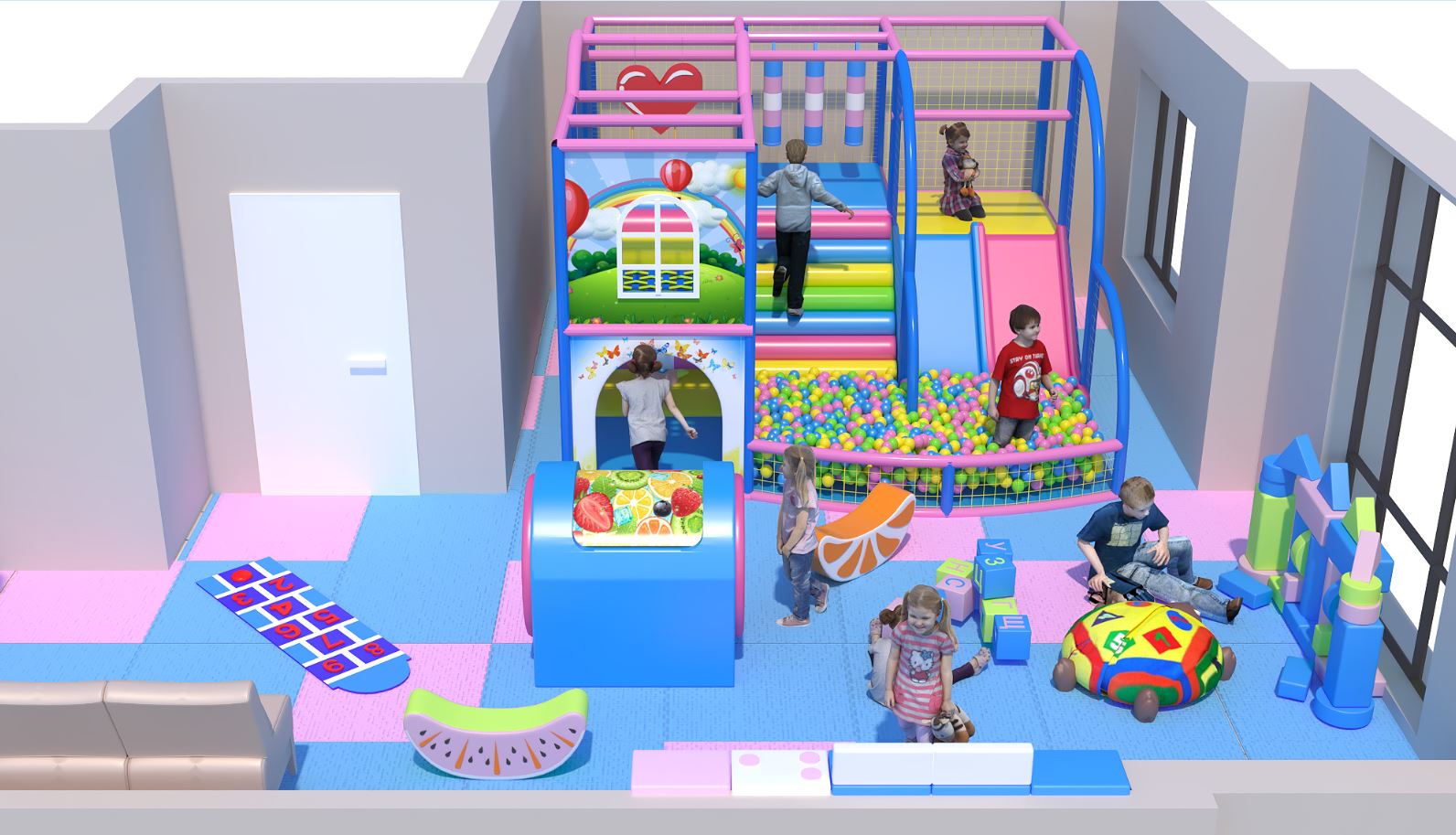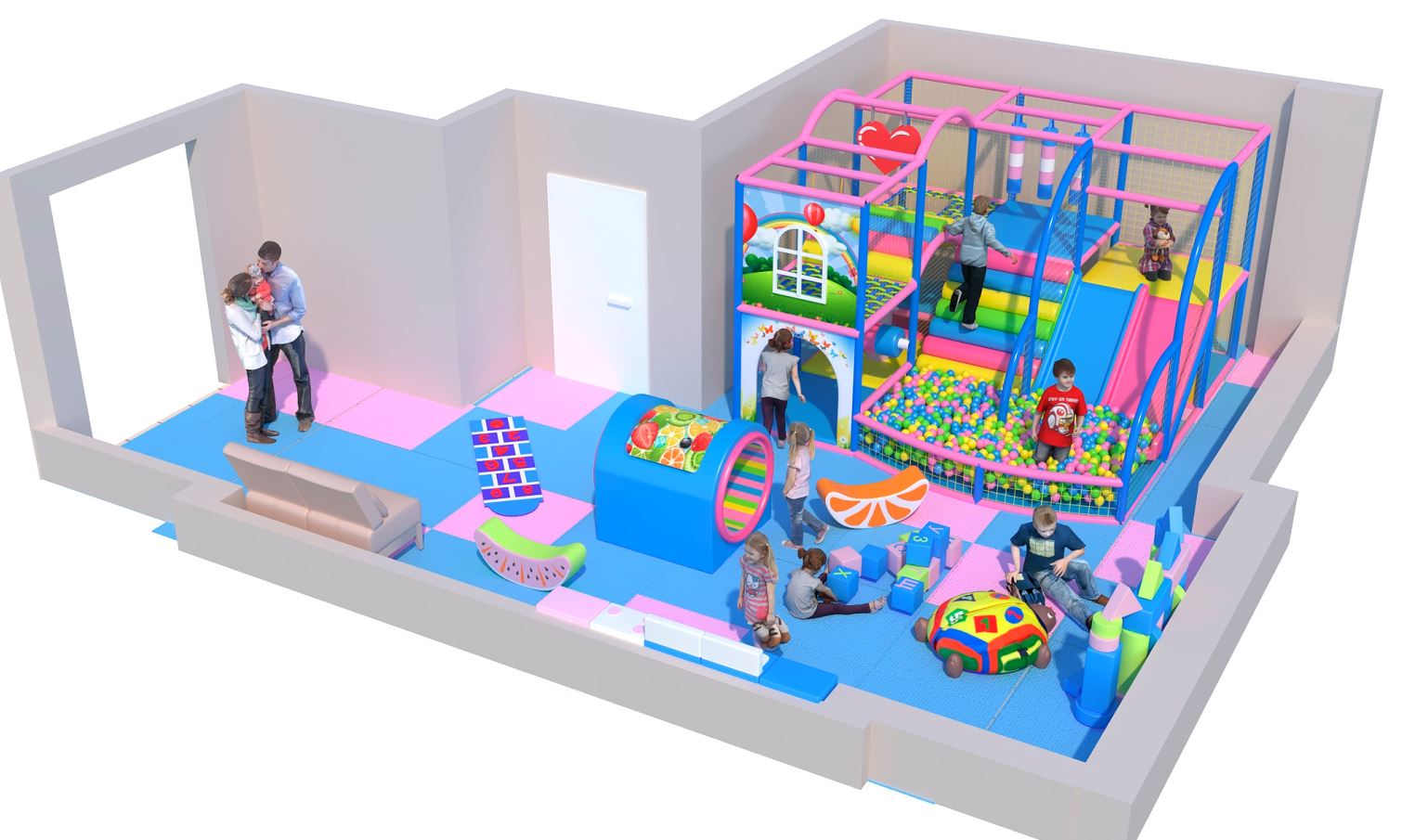 В вашем будущем детском лабиринте будут учтены особенности места установки оборудования (высота потолков, колонны, выступы, требования арендодателей). Профессиональная команда дизайнеров бесплатно создаст для вашего помещения проект востребованного комплекса в одной из 30+ тематик. У вас есть возможность управлять ценой игрового лабиринта, убирая и добавляя элементы декора и внутреннего наполнения. - Заботимся о безопасности посетителей