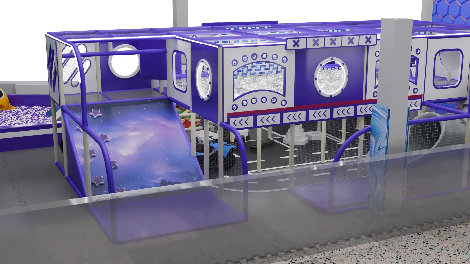 Дополняют пространство сухой бассейн с шарами и игровые зоны, развивающие ловкость и координацию. «Star Way» станет ярким акцентом в ТРЦ, игровых комнатах или семейных центрах, превращая обычное пространство в увлекательное космическое приключение для детей.