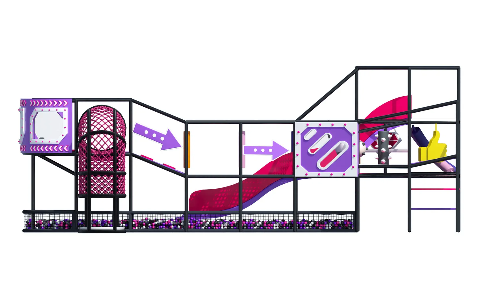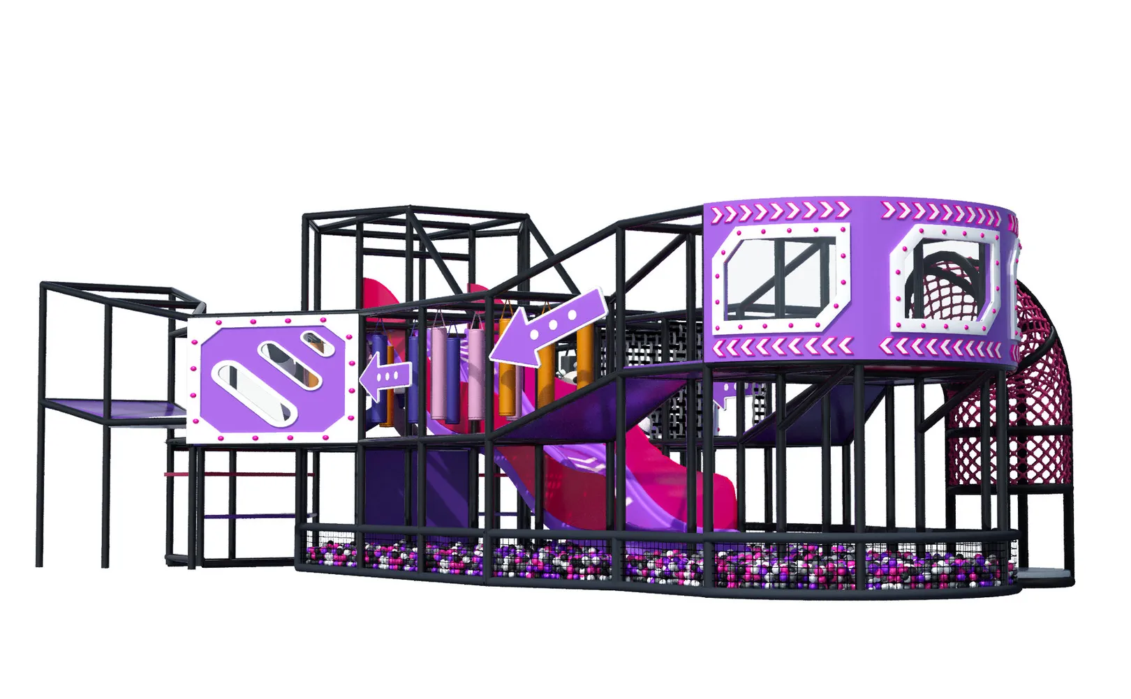 Детский игровой лабиринт «Инфинити» — это пространство бесконечного движения и энергии, созданное в стиле футуризма и неоновых оттенков. Конструкция сочетает в себе динамику, геометрию и визуальные эффекты, создавая атмосферу приключения и драйва..