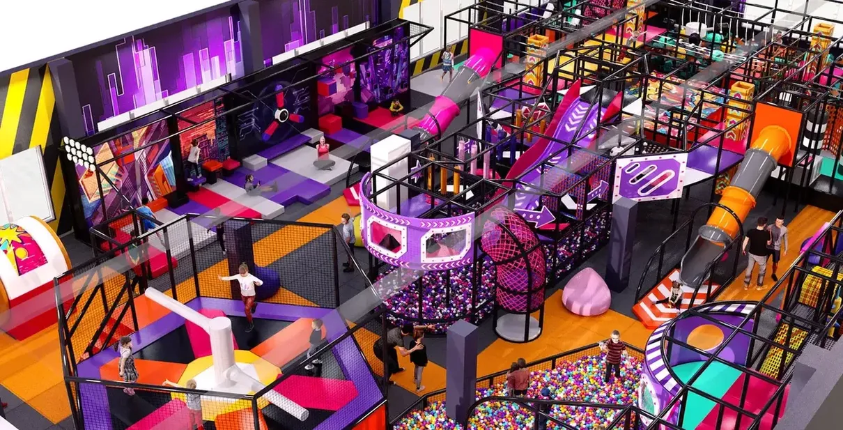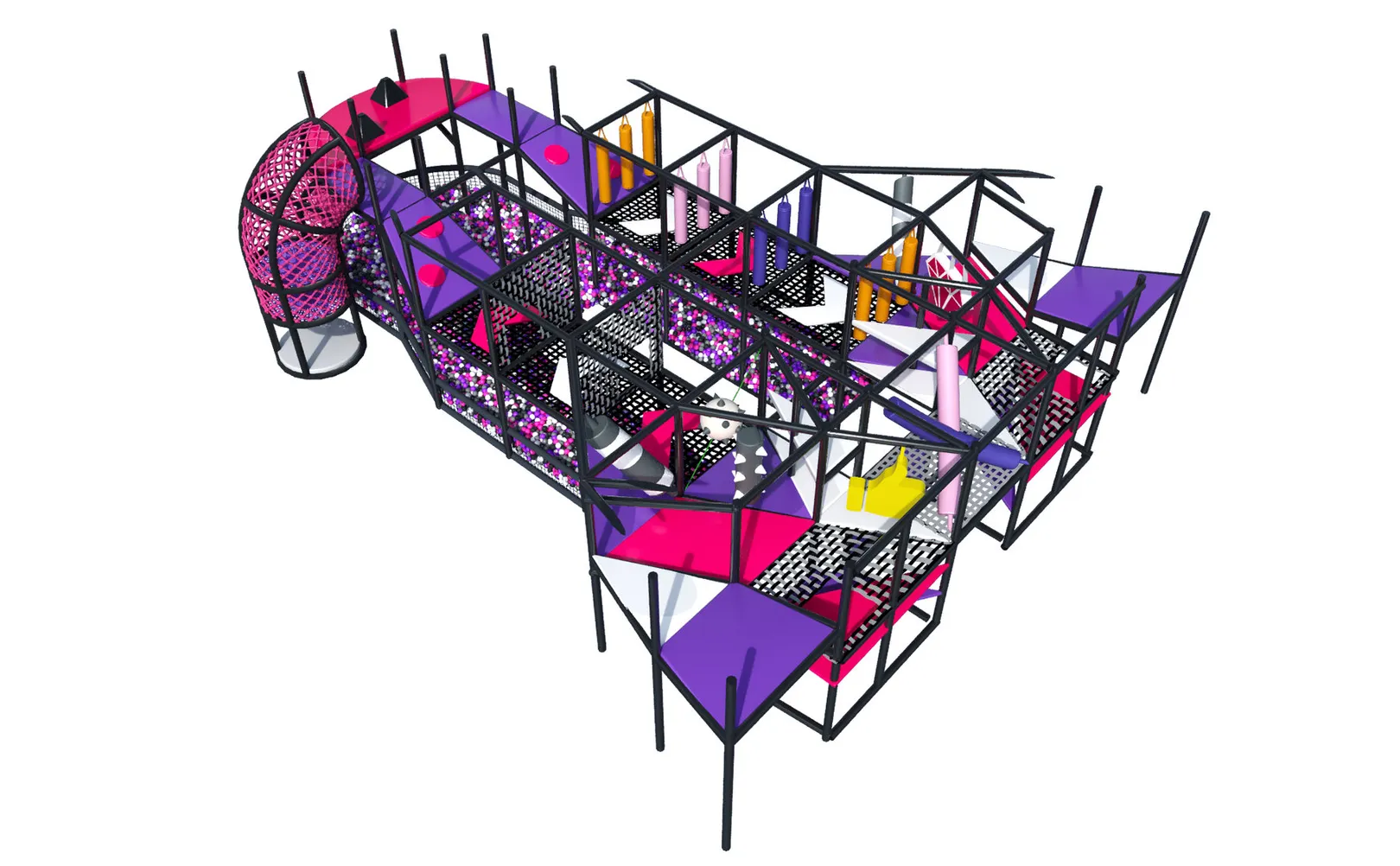 Лабиринт идеально подходит для современных батутных парков и развлекательных центров, добавляя пространству стиль, движение и настроение будущего.