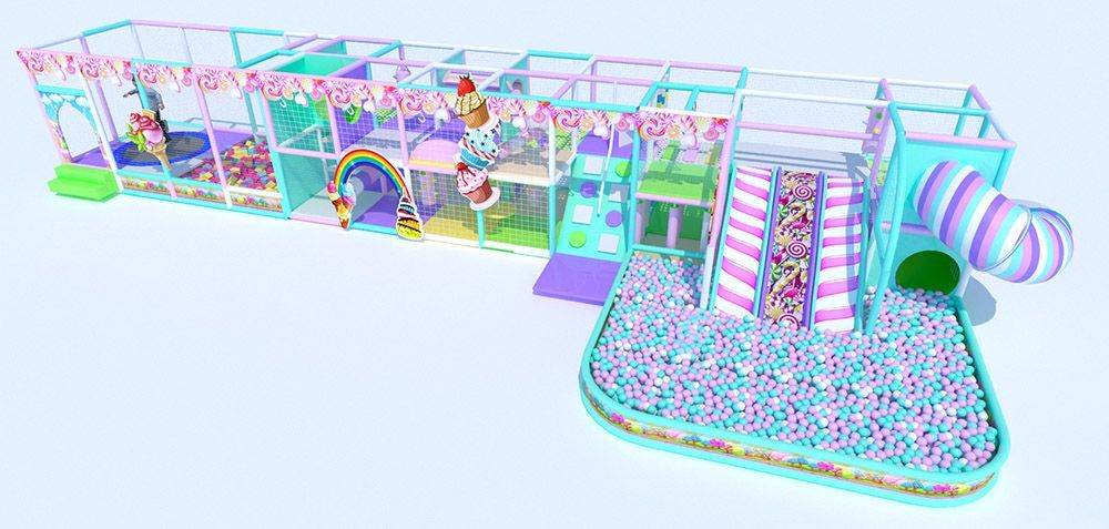 Сладкий комплекс «Креманка» притягивает взгляды не только маленьких сладкоежек, но и их родителей. Нежная палитра каждой детали лабиринта, яркое оформление в стиле кэнди, большой бассейн с легкими цветными шариками станет так же популярной фото зоной для посетителей. Цветовое окружение детей во многом выступает как регулятор их эмоционального состояния. Именно поэтому выбор в пользу спокойных, пастельных оттенков можно считать самым верным в проектировании детских игровых центров. Все оборудование выполняется на собственном заводе-изготовителе. Каждая деталь изделия сертифицирована и изготовлена из высококачественных экологически чистых материалов.