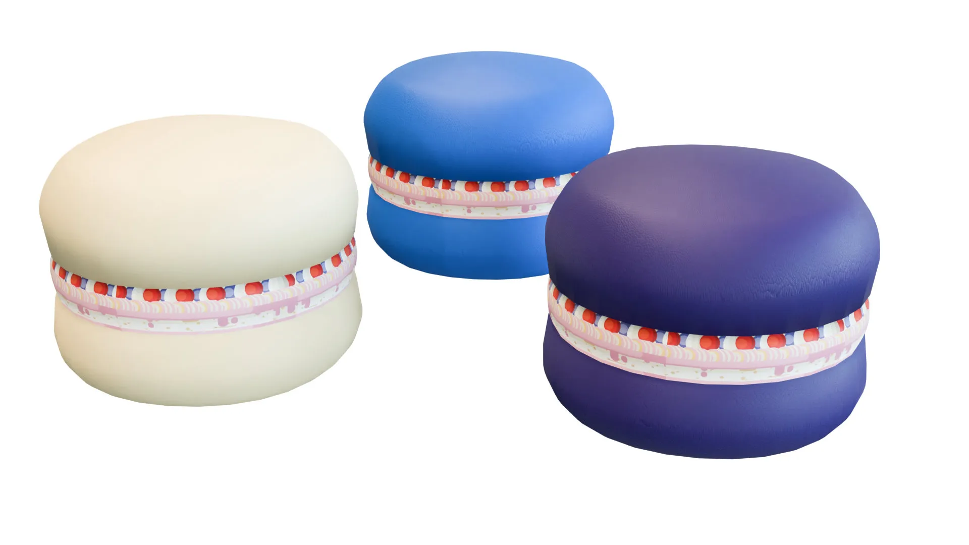 Фигура из четырех ярких макарон станет украшением и запоминающейся деталью в игровых центрах, выполненных в тематике сладостей.