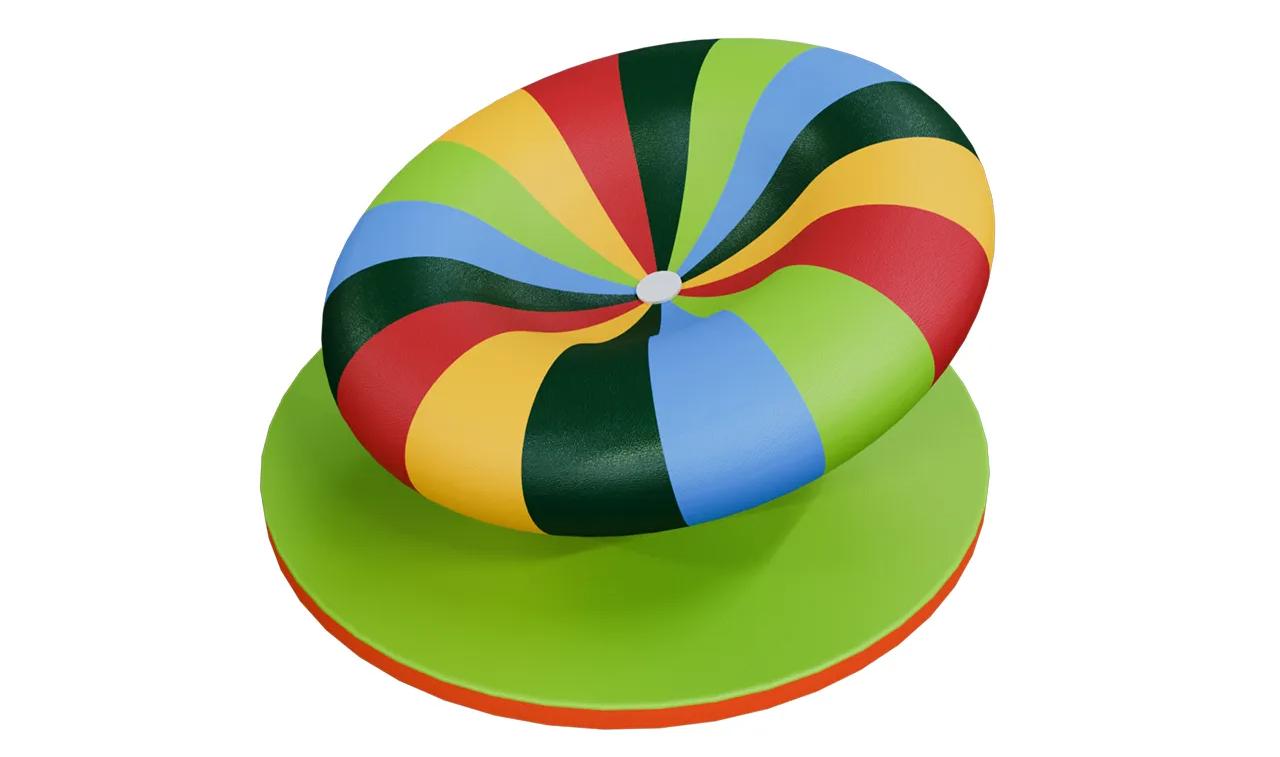 Карусель «Юла» приводится в движение изменением центра тяжести качающегося ребенка: ребенок садится в углубление и отталкивается ногами. Любое цветовое исполнение.