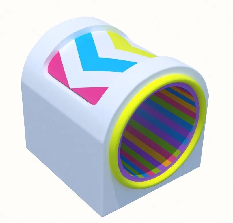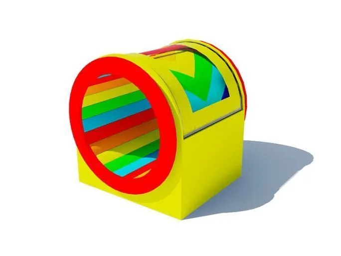 Кроме того, «Радуга» может приводиться в действие электродвигателем. В этом случае барабан находится в постоянном равномерном движении и ребенок, приспособившись к темпу легко бегает внутри.