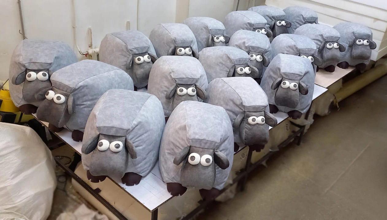 Материалы: ВИК или велюр, аппликация, поролон, гранулы пенополистирола или крошка (в зависимости от модели).
