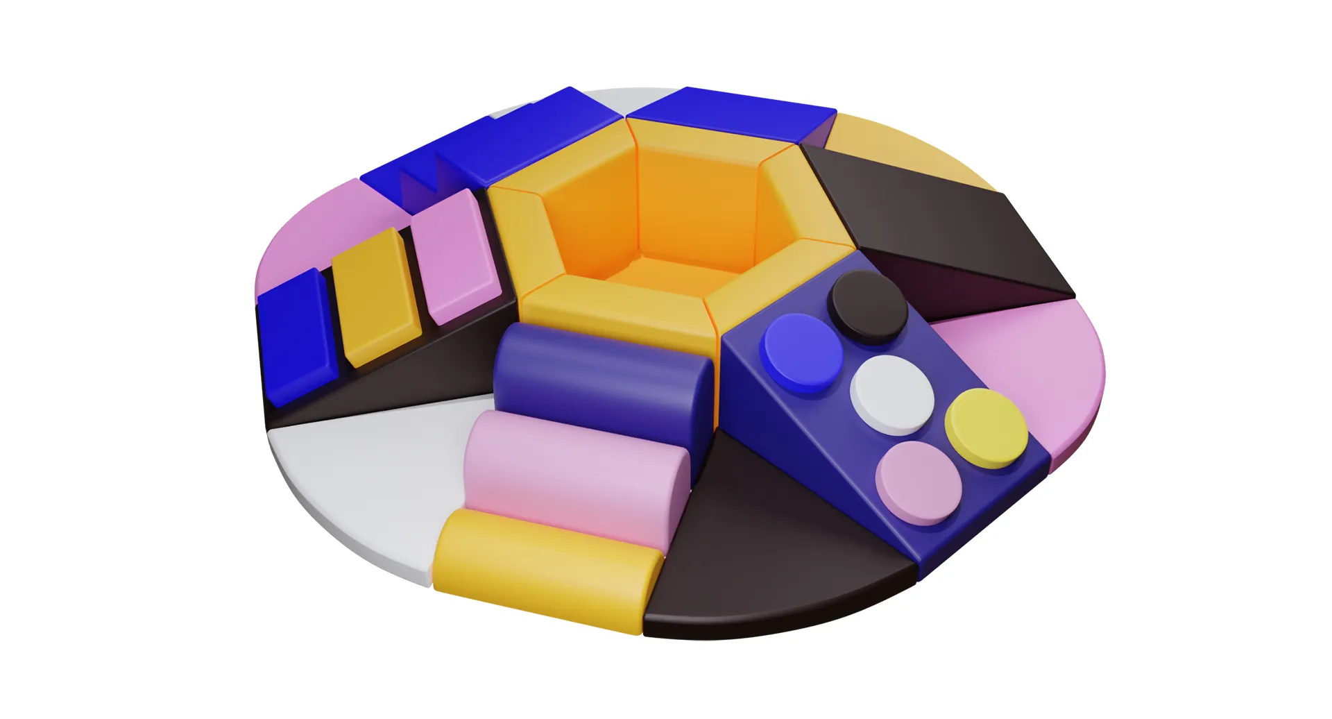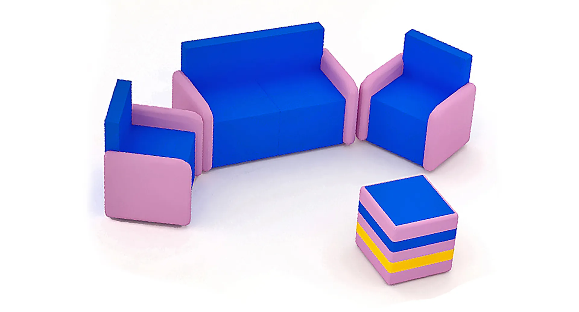 Игровая комната «Зефирка» — это стильный и уютный набор мягких модулей, выполненный в нежных пастельных тонах. Гармоничное сочетание розового, голубого и желтого цветов создает приятную атмосферу, располагающую как к спокойному отдыху, так и к развивающим играм.