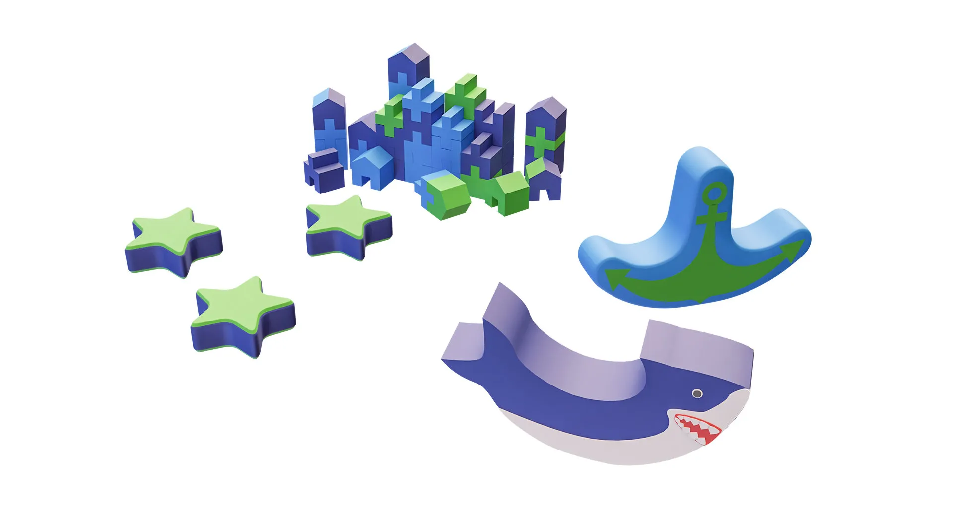 Комплект мягких модулей для детского центра «Аква» — это многофункциональный игровой набор в морской тематике, сочетающий в себе элементы конструктора и качалки. Яркие фигуры и строительные блоки позволяют организовать увлекательную тематическую зону, где дети могут строить города, придумывать морские приключения и развивать координацию.