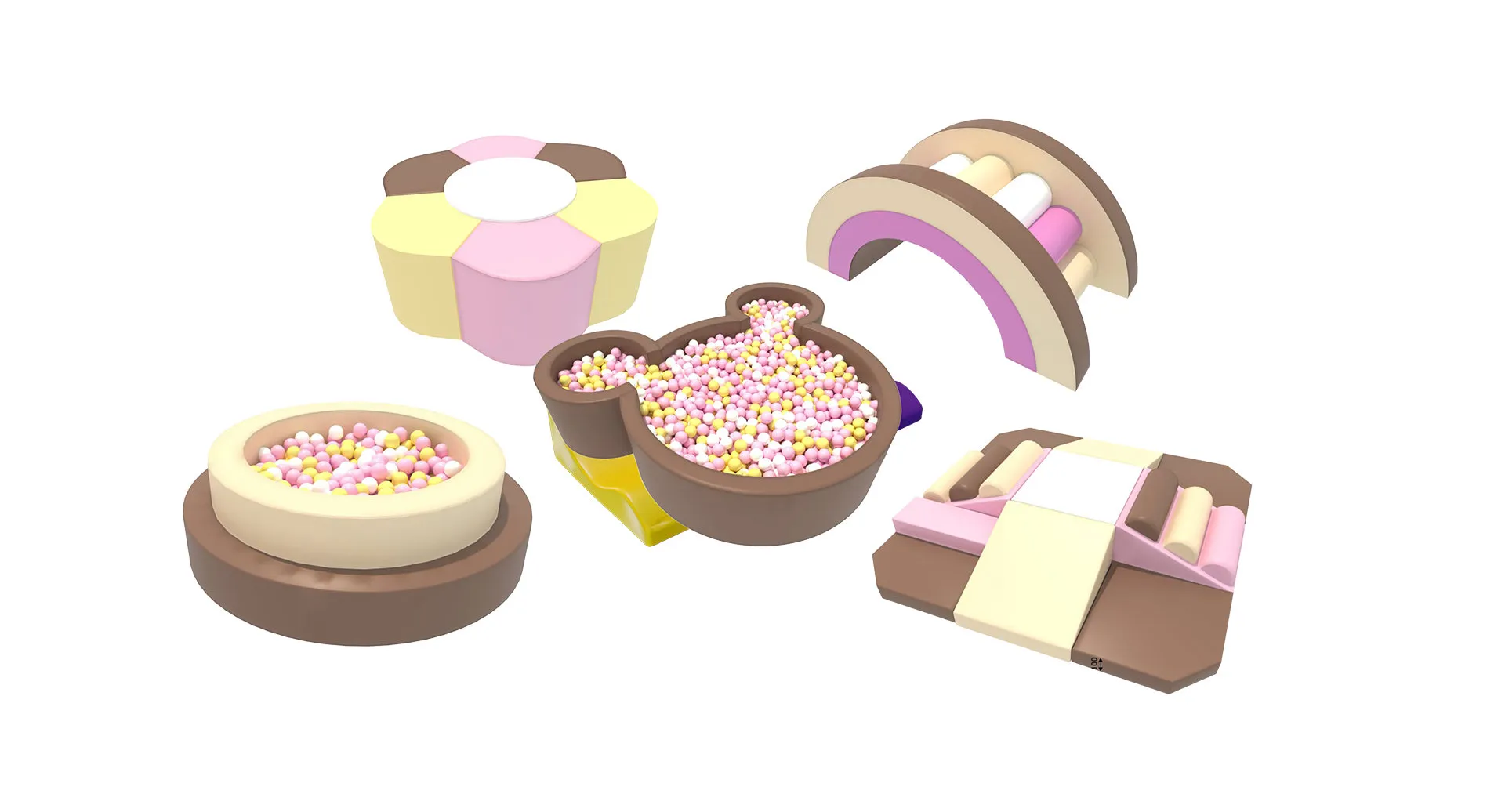 Комплект мягких модулей «Суфле» — это невероятно нежный и эстетичный игровой набор, выполненный в «кондитерских» пастельных тонах. Сочетание шоколадных, сливочных и розовых оттенков делает этот комплекс стильным украшением любой детской комнаты или игровой зоны для малышей.
