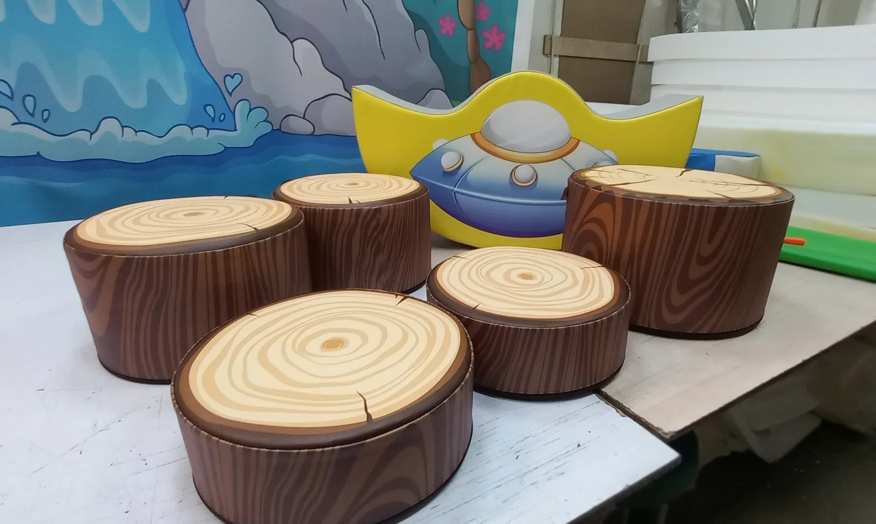 Пуфик «Пенёк» — стильный и необычный элемент мягкой мебели, который отлично вписывается в игровые комнаты, квест-зоны, детские центры и эко-оформление интерьеров. Благодаря детализированной УФ-печати пуфик выглядит как настоящий спил дерева, оставаясь при этом мягким, лёгким и безопасным.