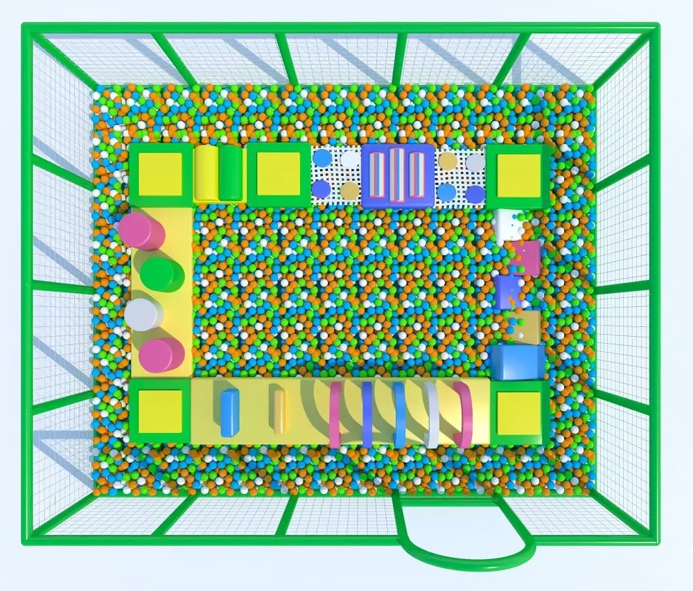 Детская полоса препятствий «Круговой маршрут» хорошо подойдет в детский центр стилизованный под тропики или джунгли. Оборудование включает в себя множество активити-элементов – репсовые платформы, тоннели, мостики, все это понравится самым маленьким. По периметру конструкции натянута сетка, а весь каркас закрыт мягкими рукавами, которые обеспечивают безопасность.
