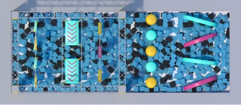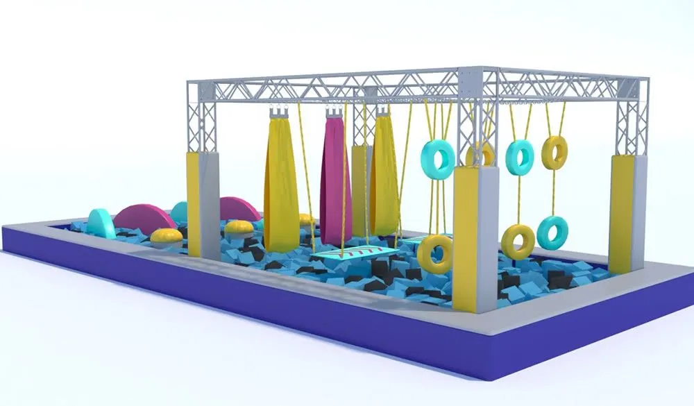 Парк состоит из металлического каркаса с закрепленными на нем подвесными лестницами, кольцами, мостами, рукоходами, крутящимися бревнами и другими спортивными снарядами. Полоса препятствий размещается над поролоновой ямой, что обеспечивает мягкое и безопасное приземление и позволяет не использовать страховку.