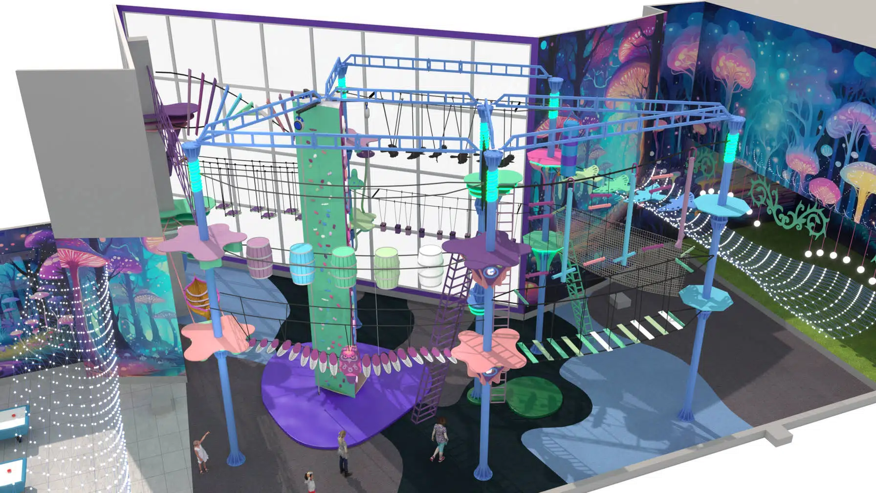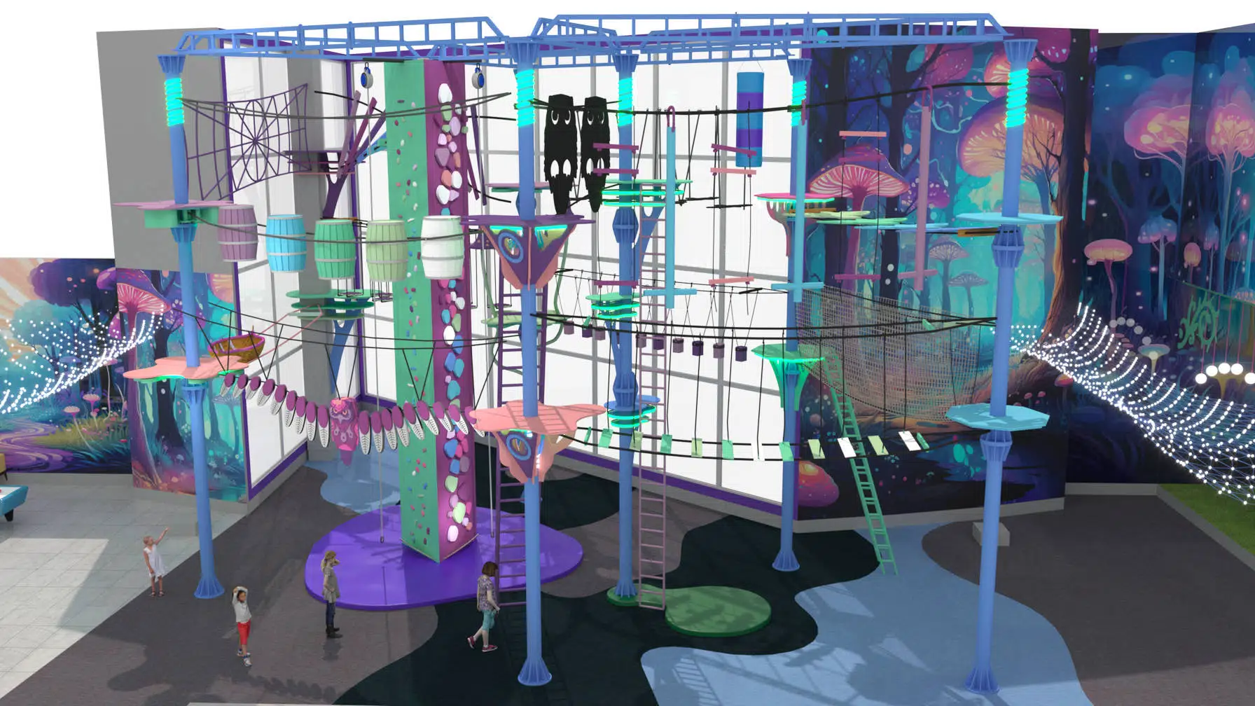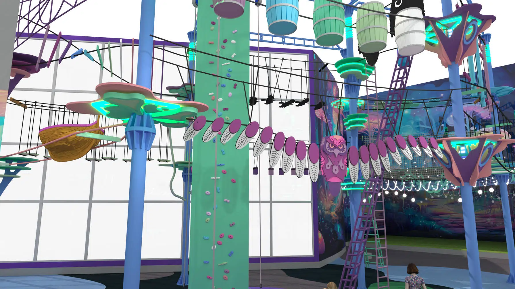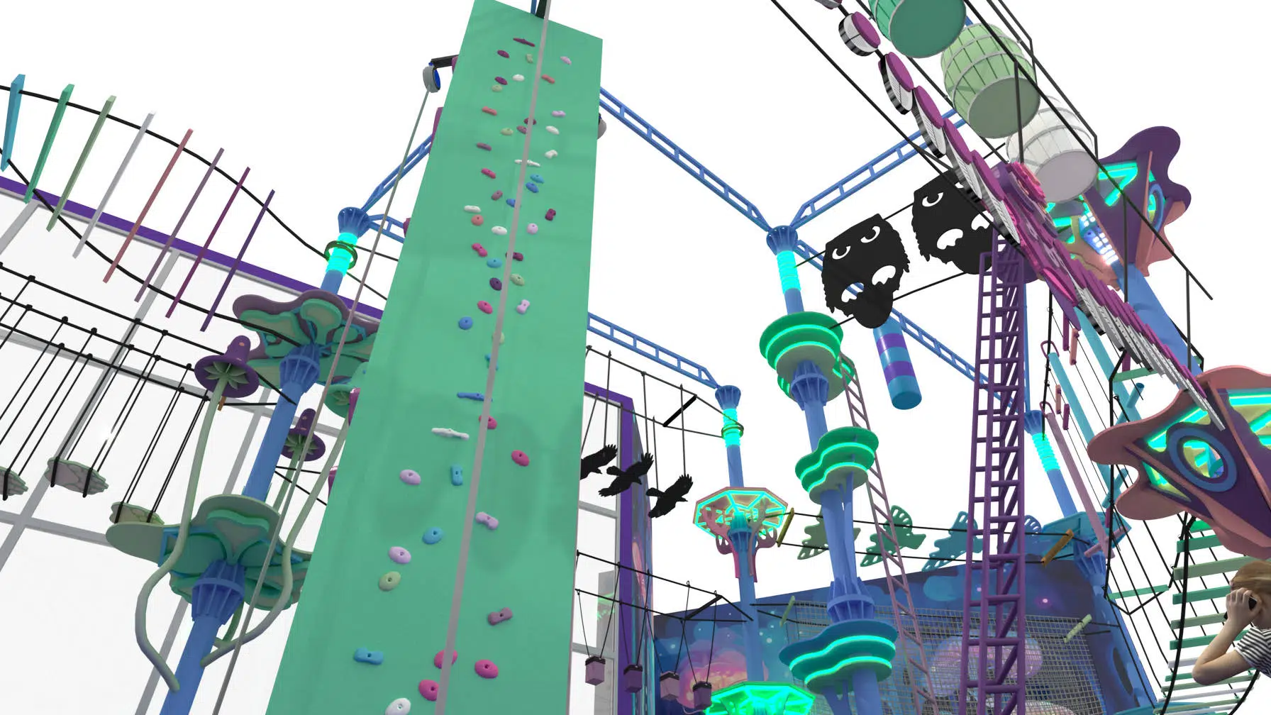 Этапы и станции оформлены тематическим декором, а среди активностей предусмотрен скалодром, который добавляет разнообразие и динамику. Все элементы выполнены из прочных и безопасных материалов, а за надёжность отвечает современная страховочная система. «Сова» подойдёт для семейного отдыха, детских праздников, корпоративов и турнирных состязаний, становясь центром притяжения в торговом комплексе, парке развлечений или загородном клубе.